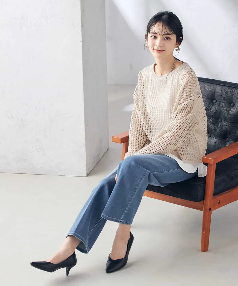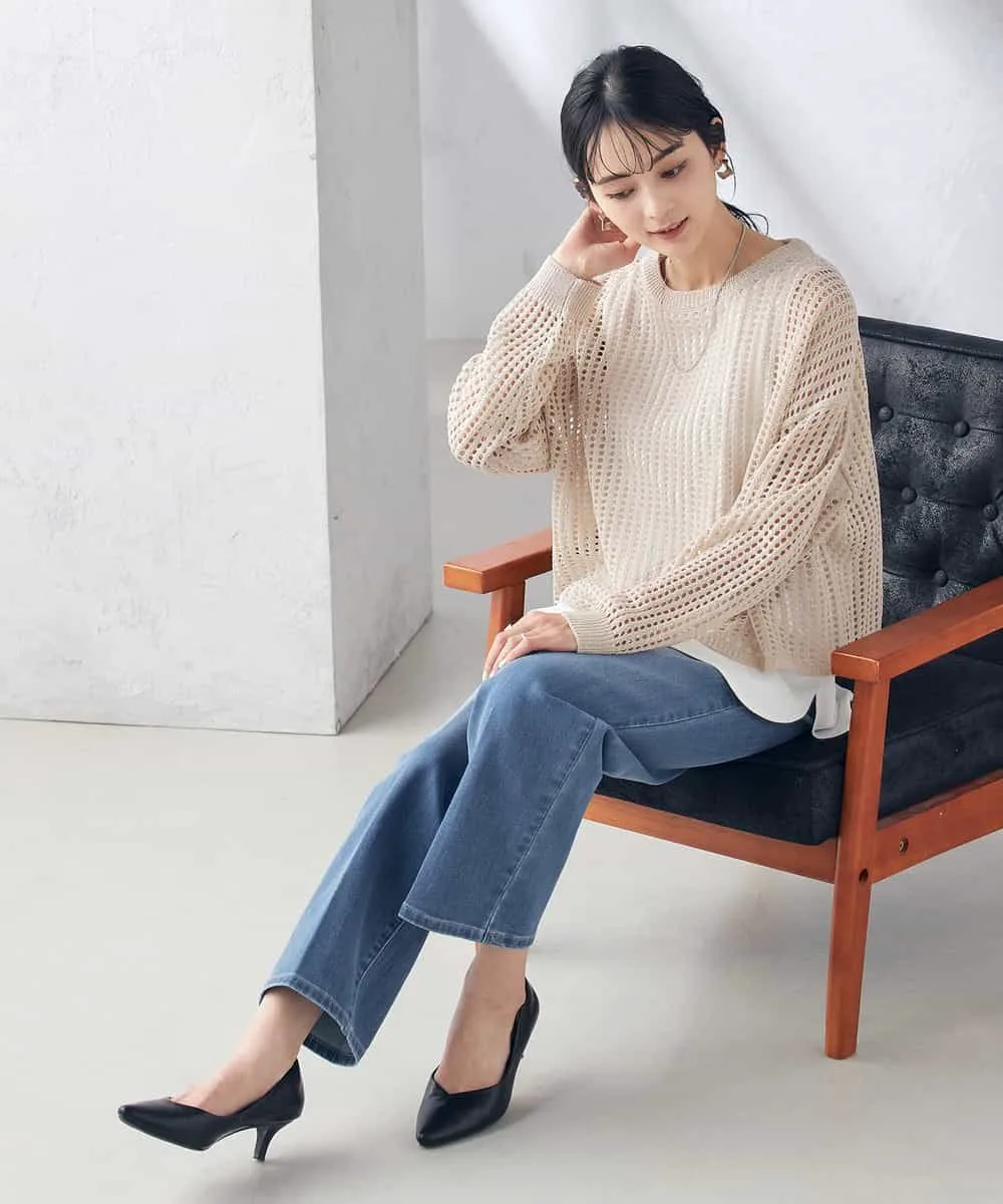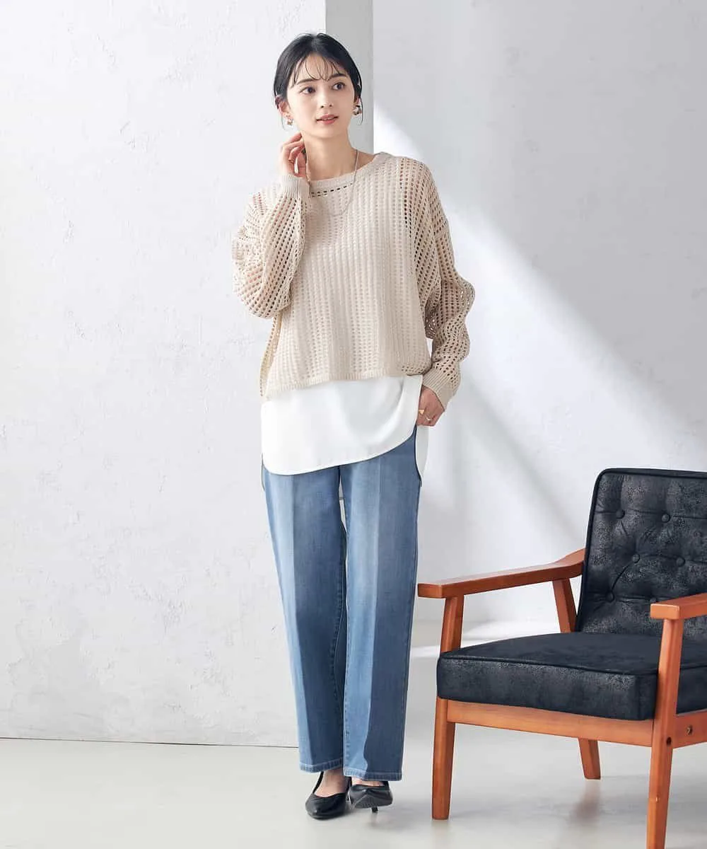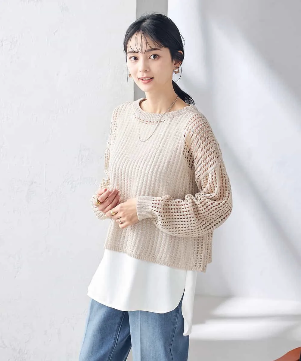 Этот прозрачный трикотаж из сетки можно сочетать с длинным топом или рубашкой для создания многослойного образа.