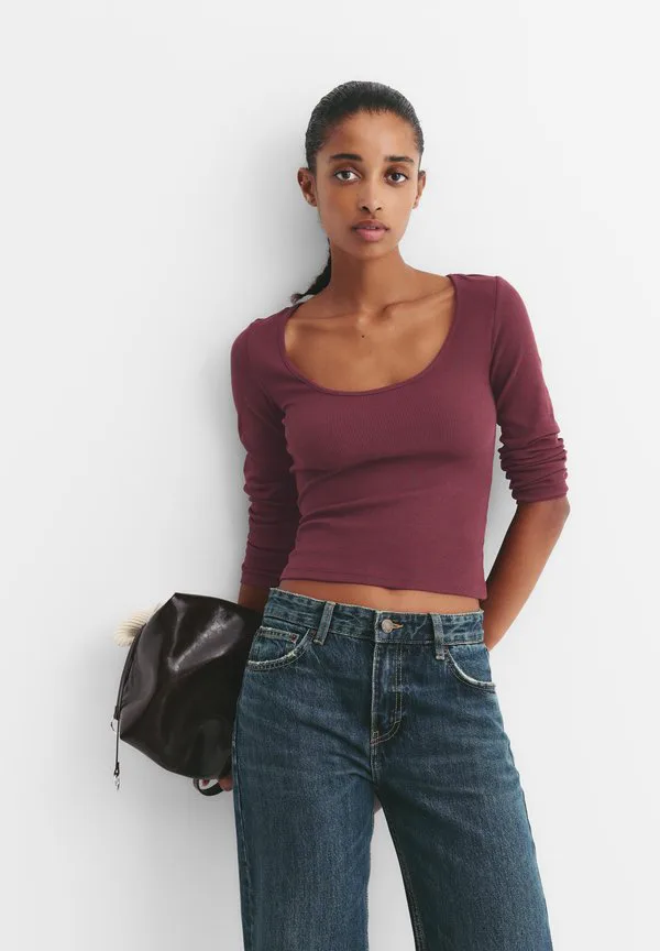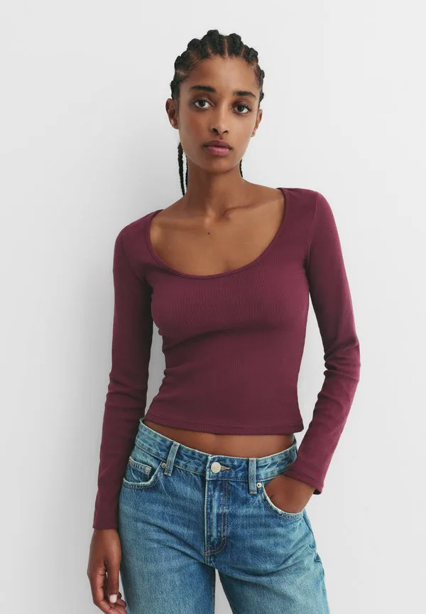 Топ с круглым вырезом и длинными рукавами Pull&Bear, Bordeaux