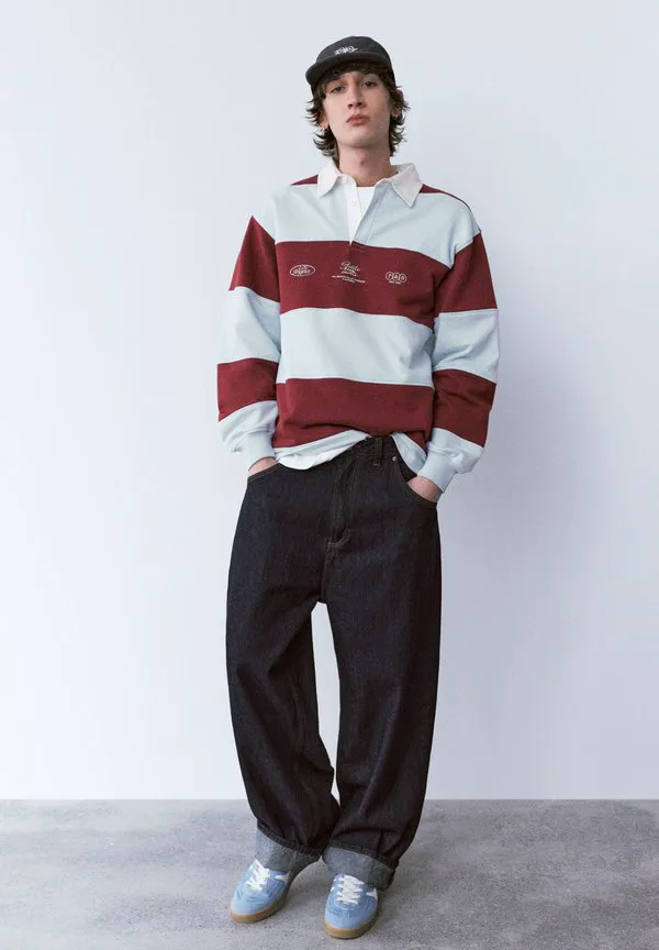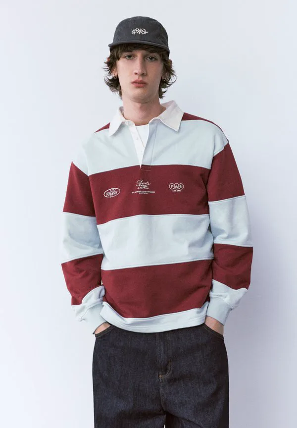 Полосатая рубашка поло Pull&Bear, Bordeaux