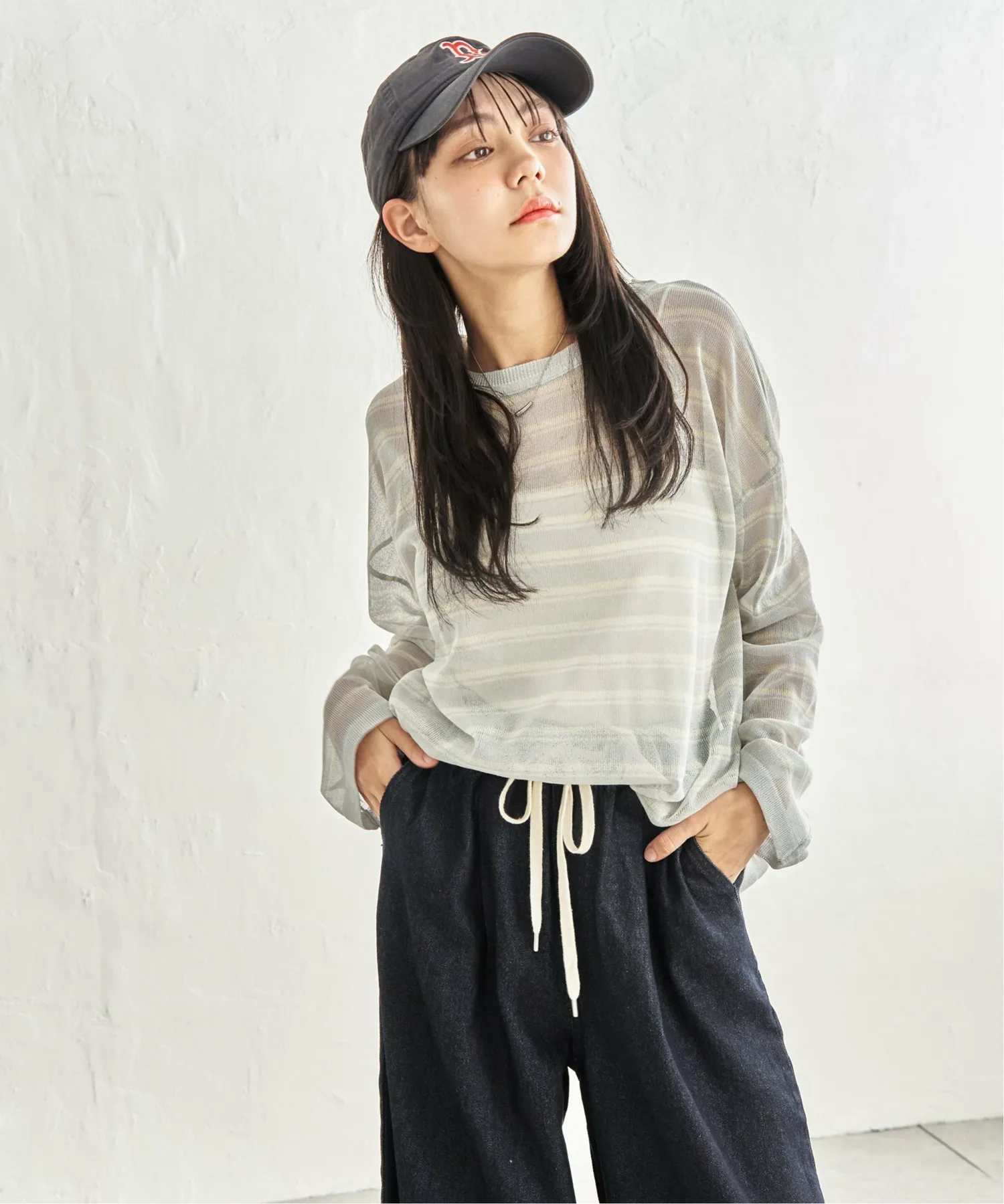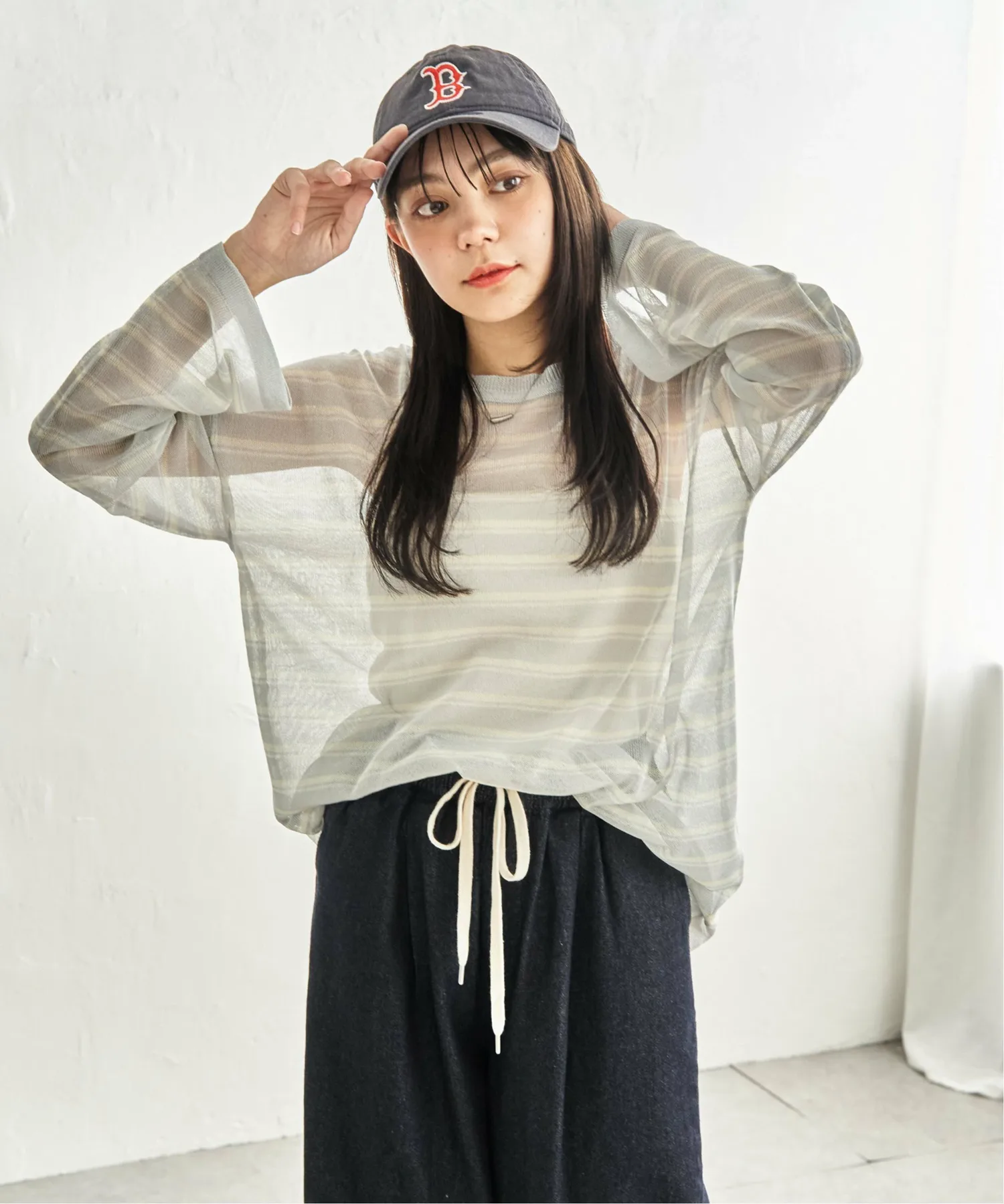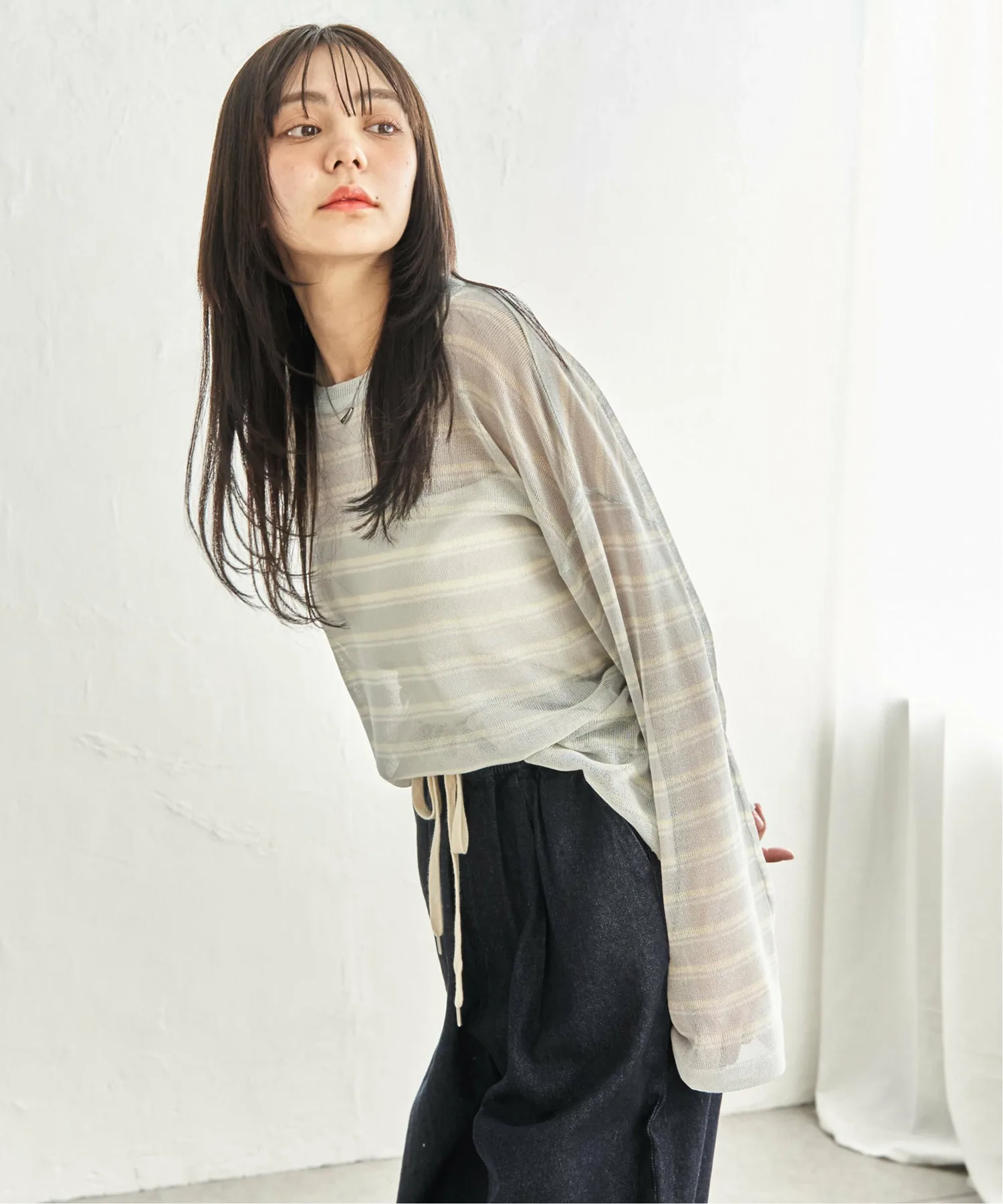 - Повседневный полосатый узор, выраженный прозрачным материалом.