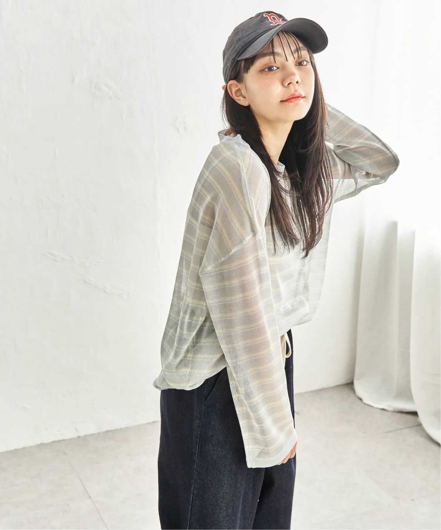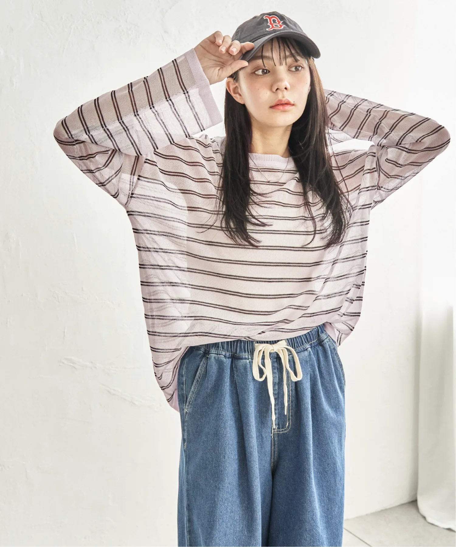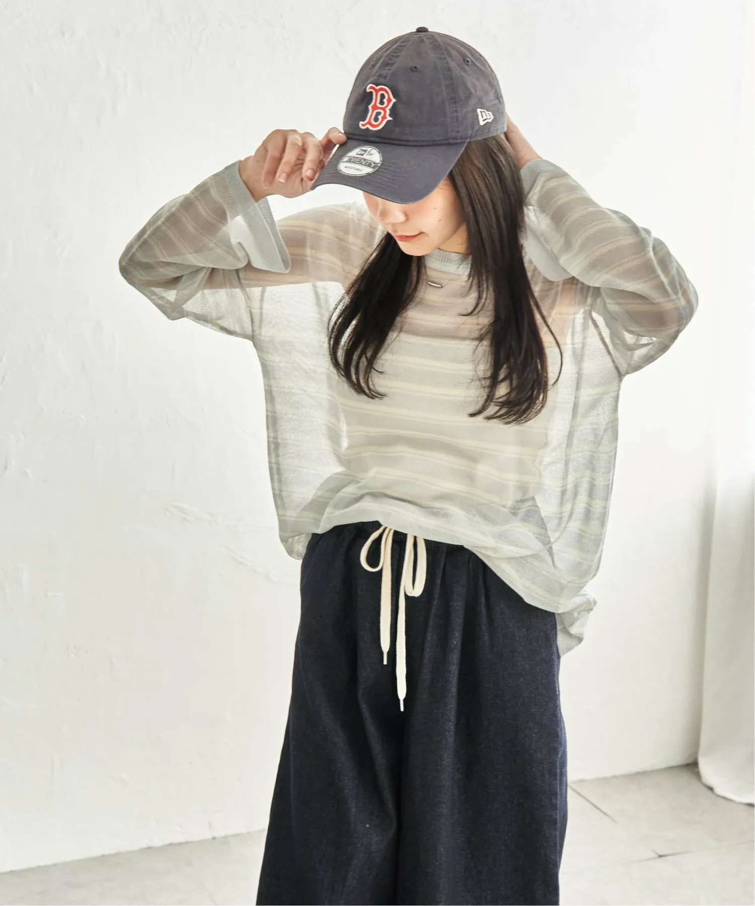 - Повседневный полосатый узор, выраженный прозрачным материалом.