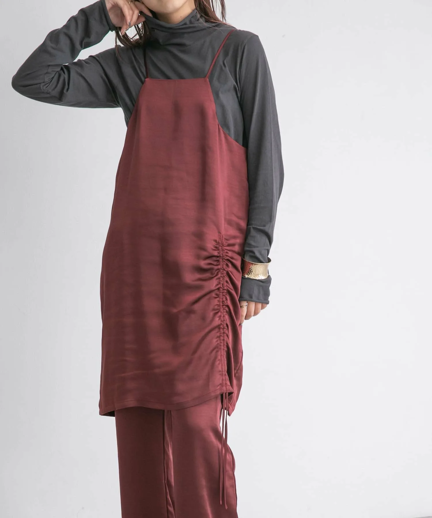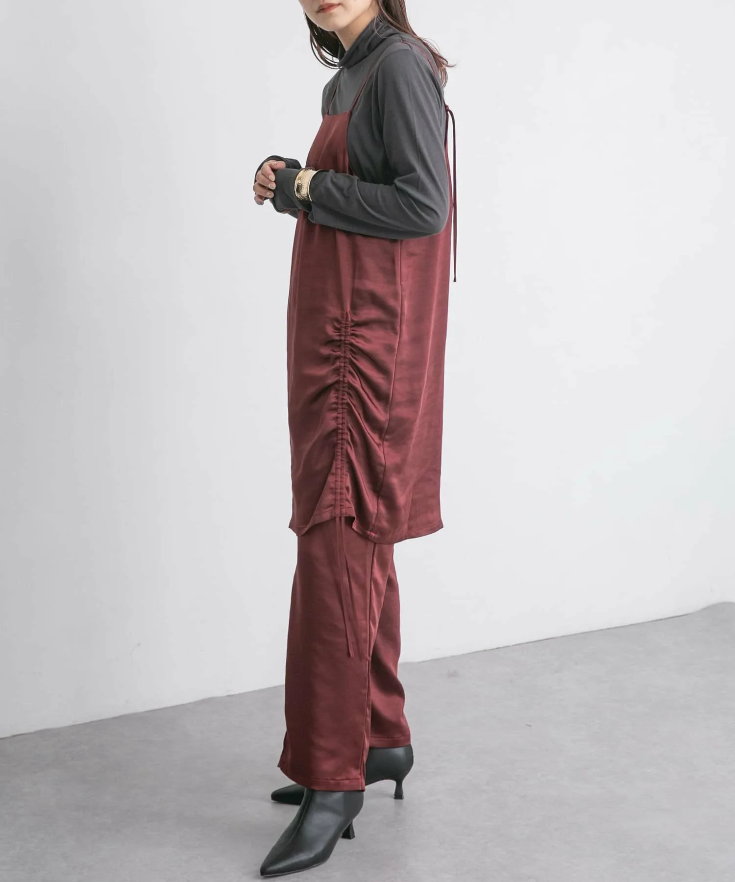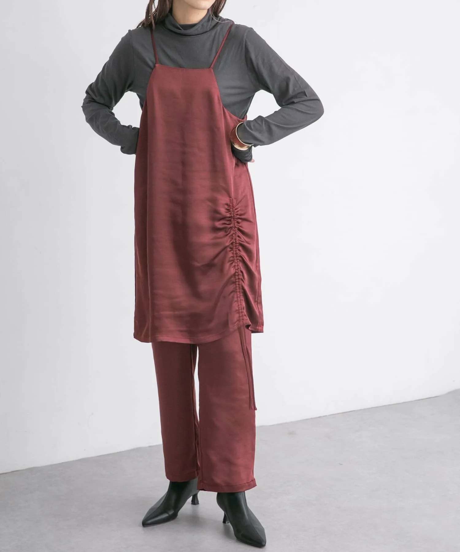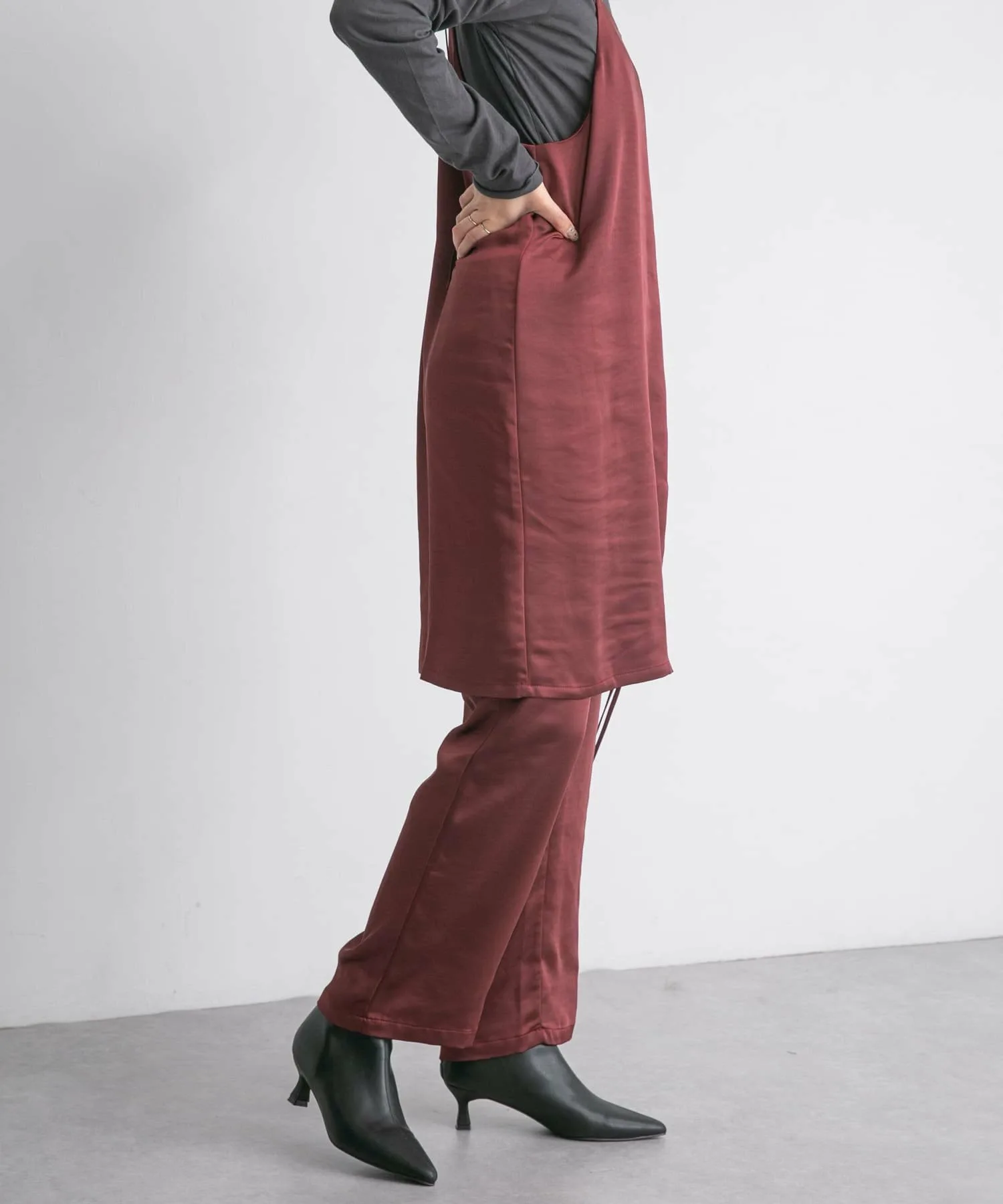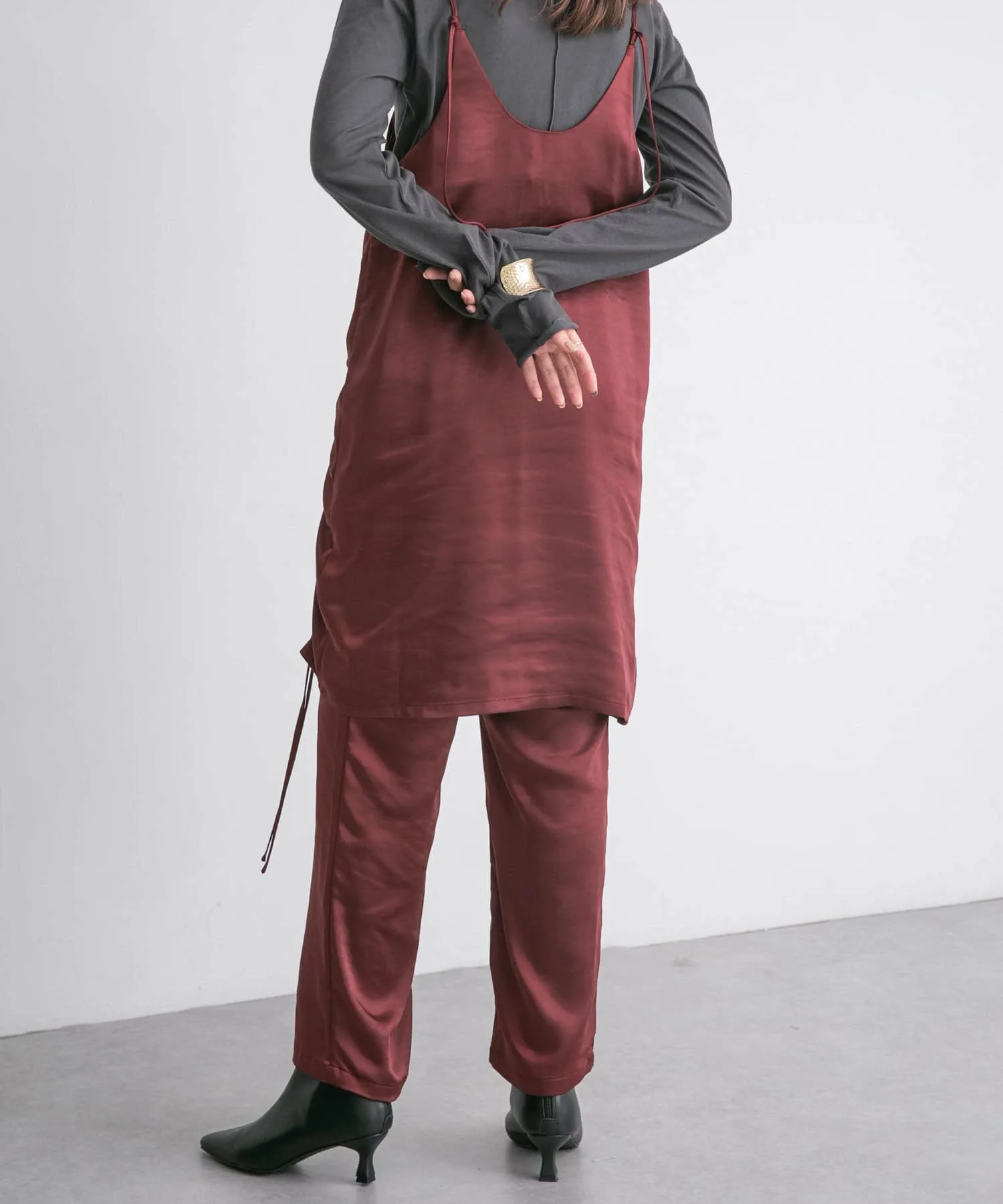 Этот выгодный комплект из платья и брюк изготовлен из ткани с умеренным блеском, создающей элегантный образ. Майка имеет регулируемые завязки, а брюки эластичные, что делает их удобными в ношении. Доступен в базовом черном цвете, а также в стильных синем и бордовом.