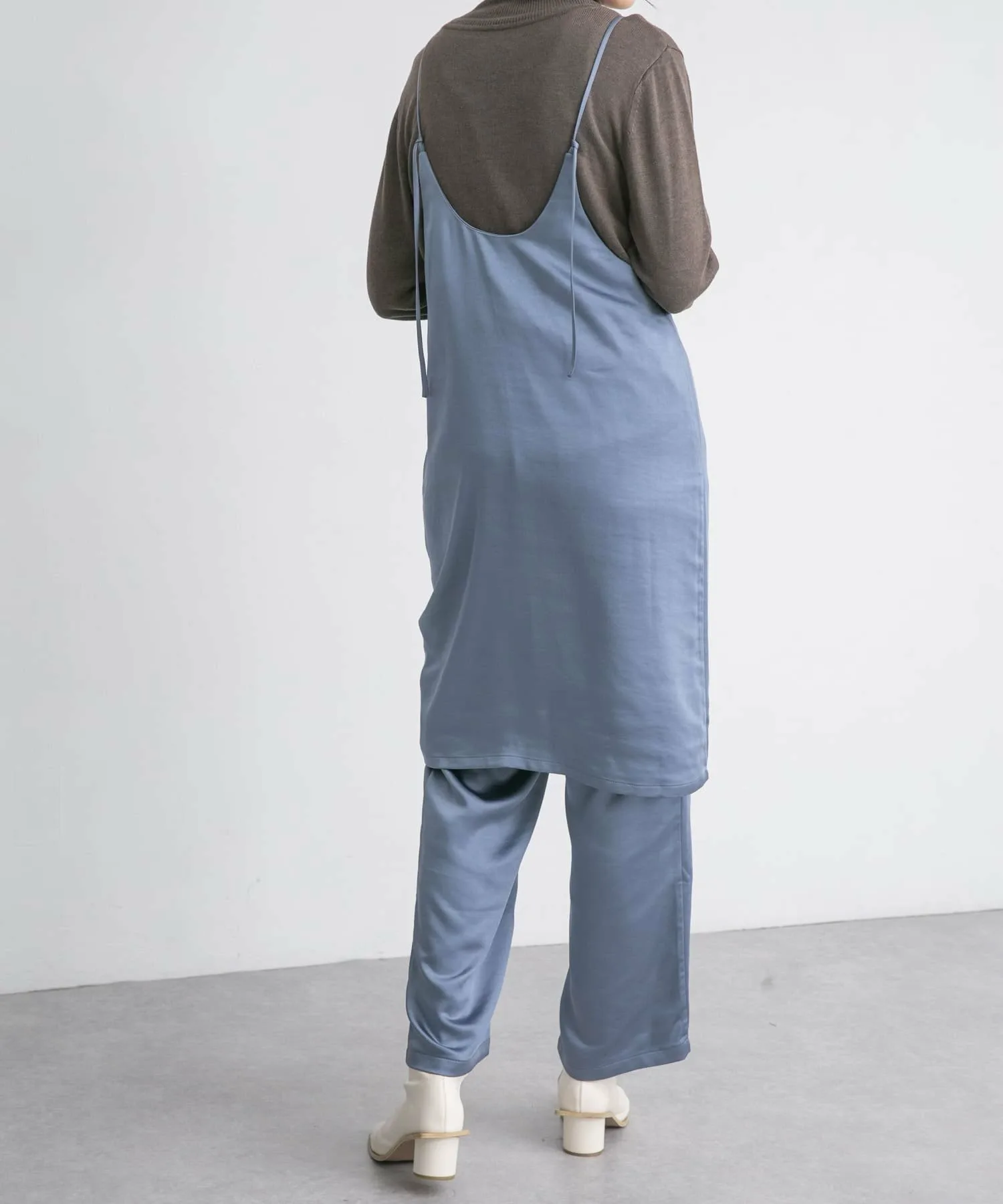 Этот выгодный комплект из платья и брюк изготовлен из ткани с умеренным блеском, создающей элегантный образ. Майка имеет регулируемые завязки, а брюки эластичные, что делает их удобными в ношении. Доступен в базовом черном цвете, а также в стильных синем и бордовом.
