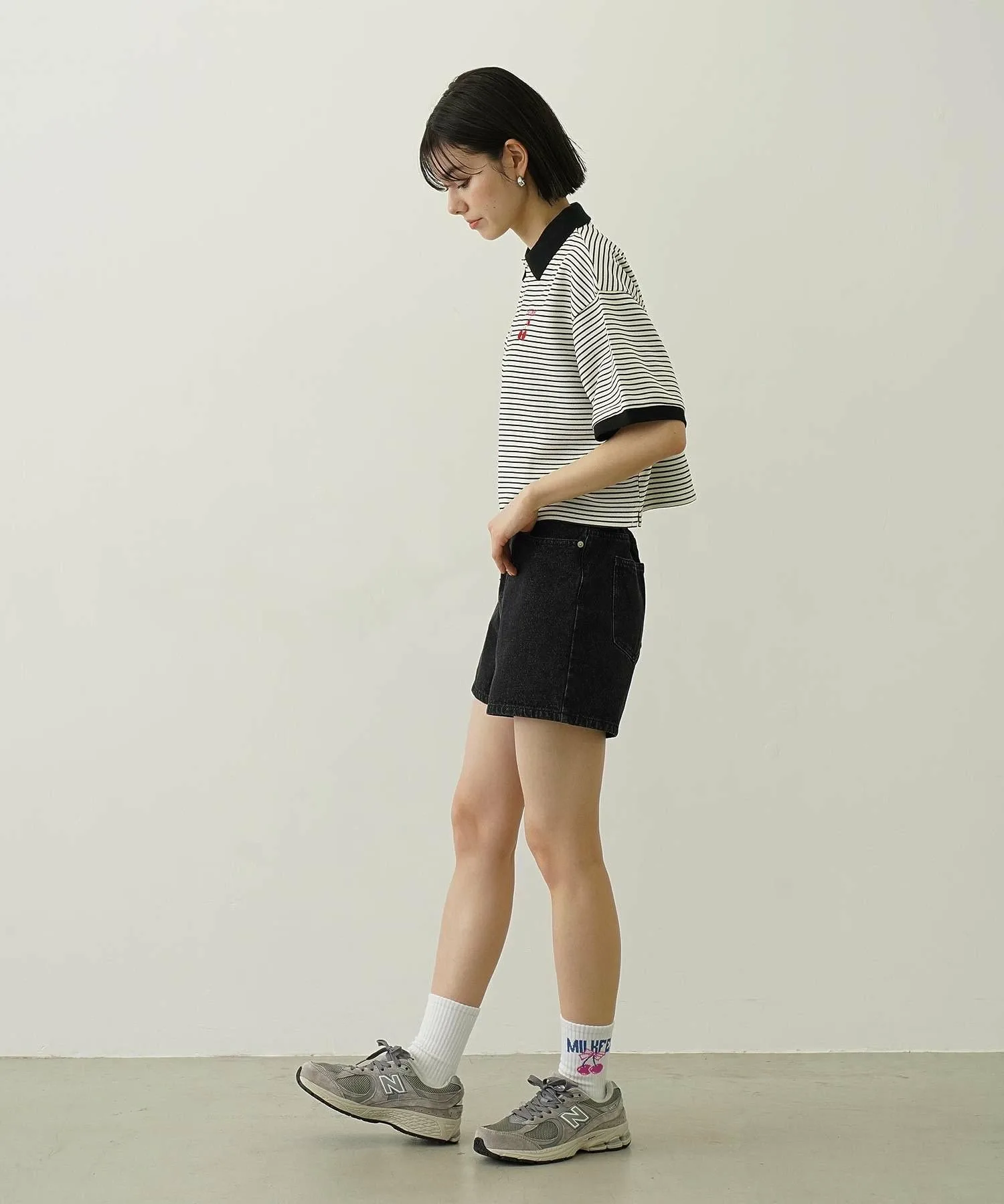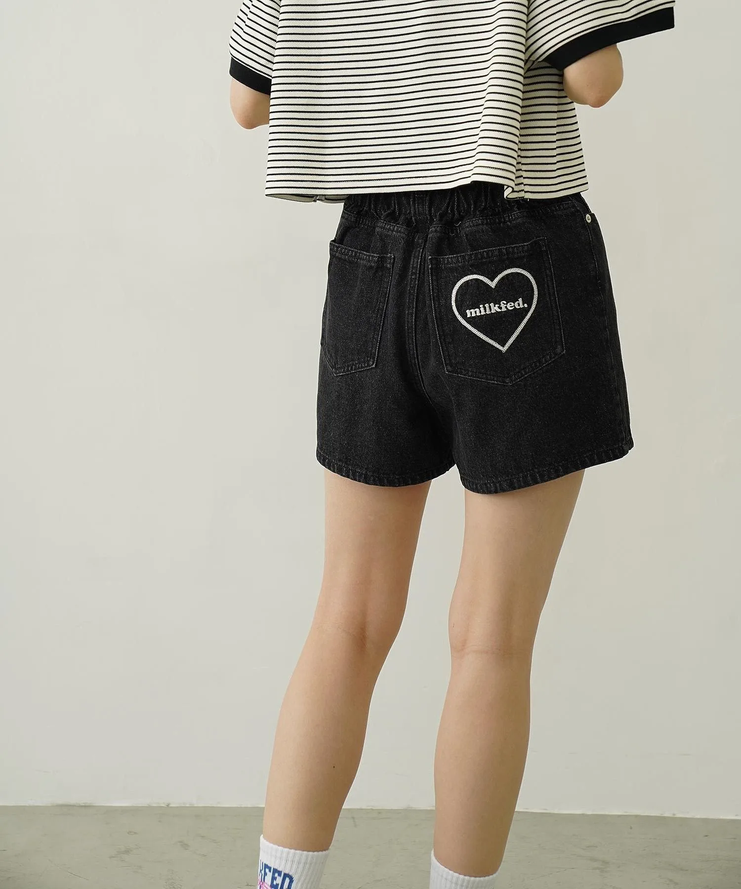 Джинсовые шорты с вышитым логотипом на кармане.