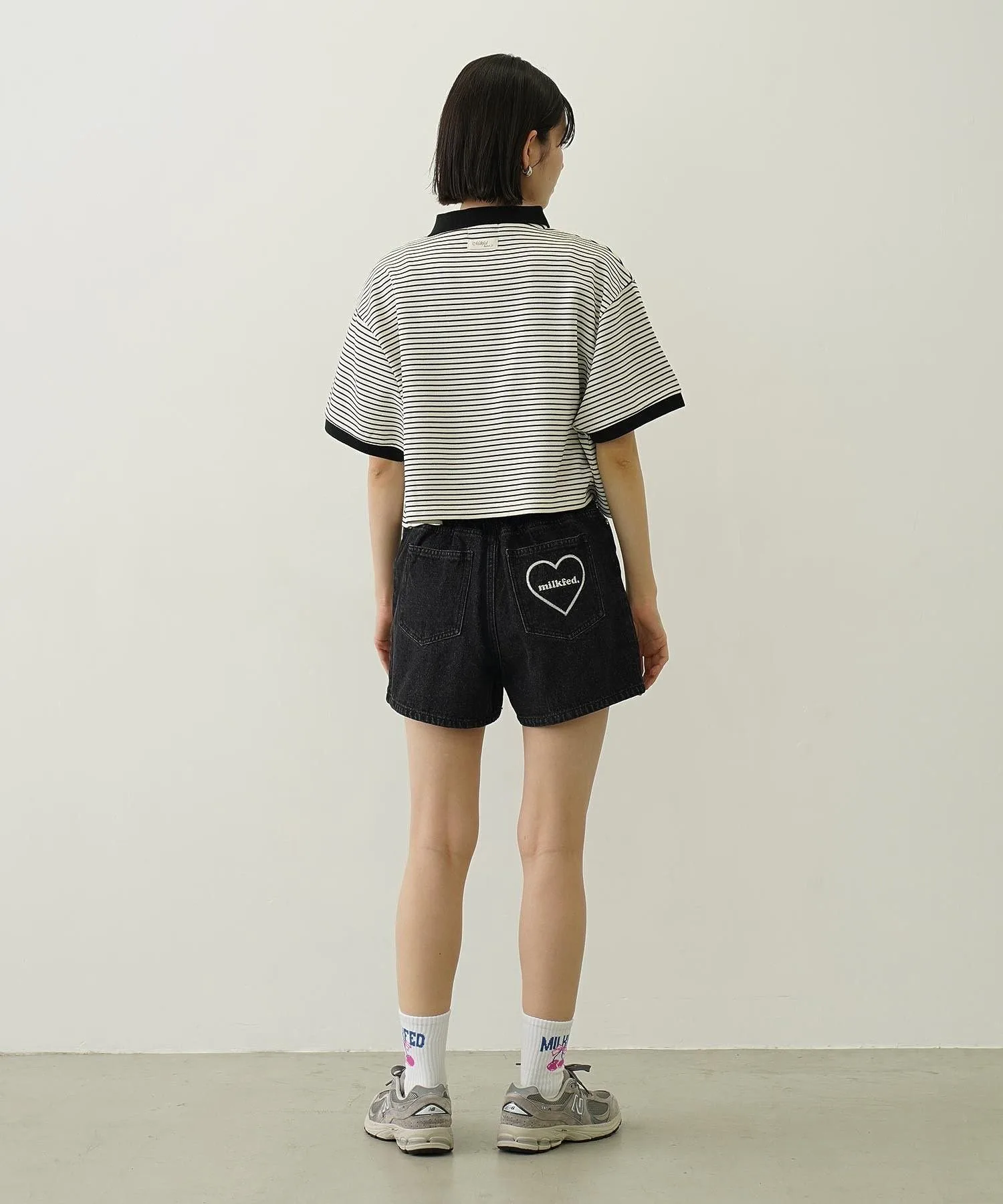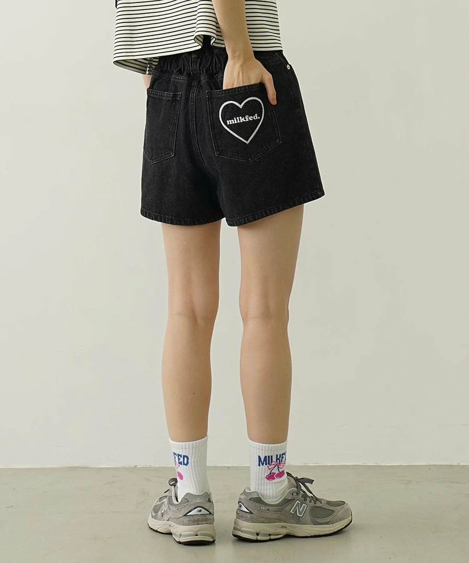 Вышивка в виде сердца и логотипа на заднем кармане добавляет акцент.