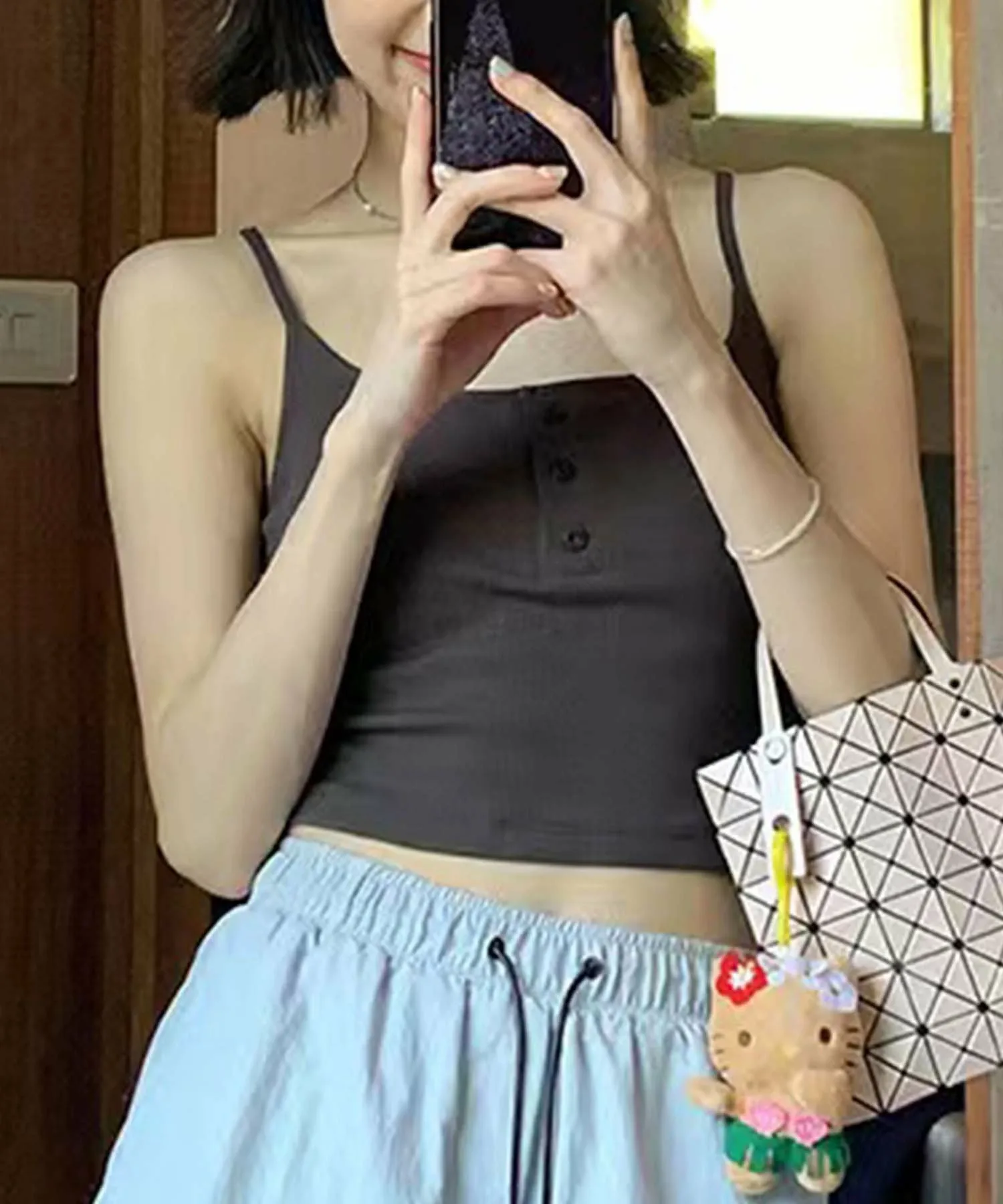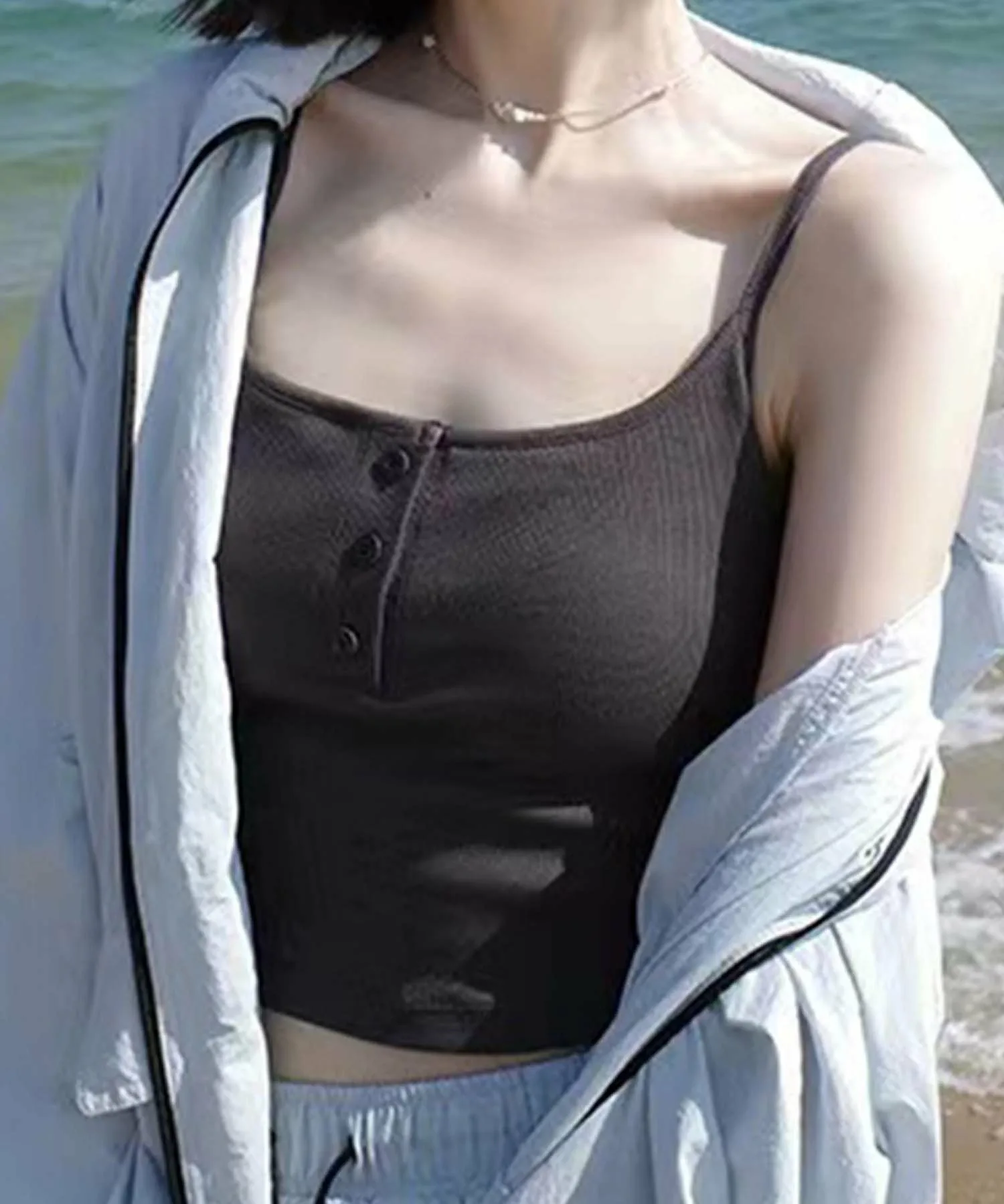 Майка с пуговицами спереди, подчеркивающая простую женственность. Детали с пуговицами добавляют изюминку, придавая ей стильный, но в то же время повседневный вид. Полосатый дизайн также добавляет ей непринужденности!