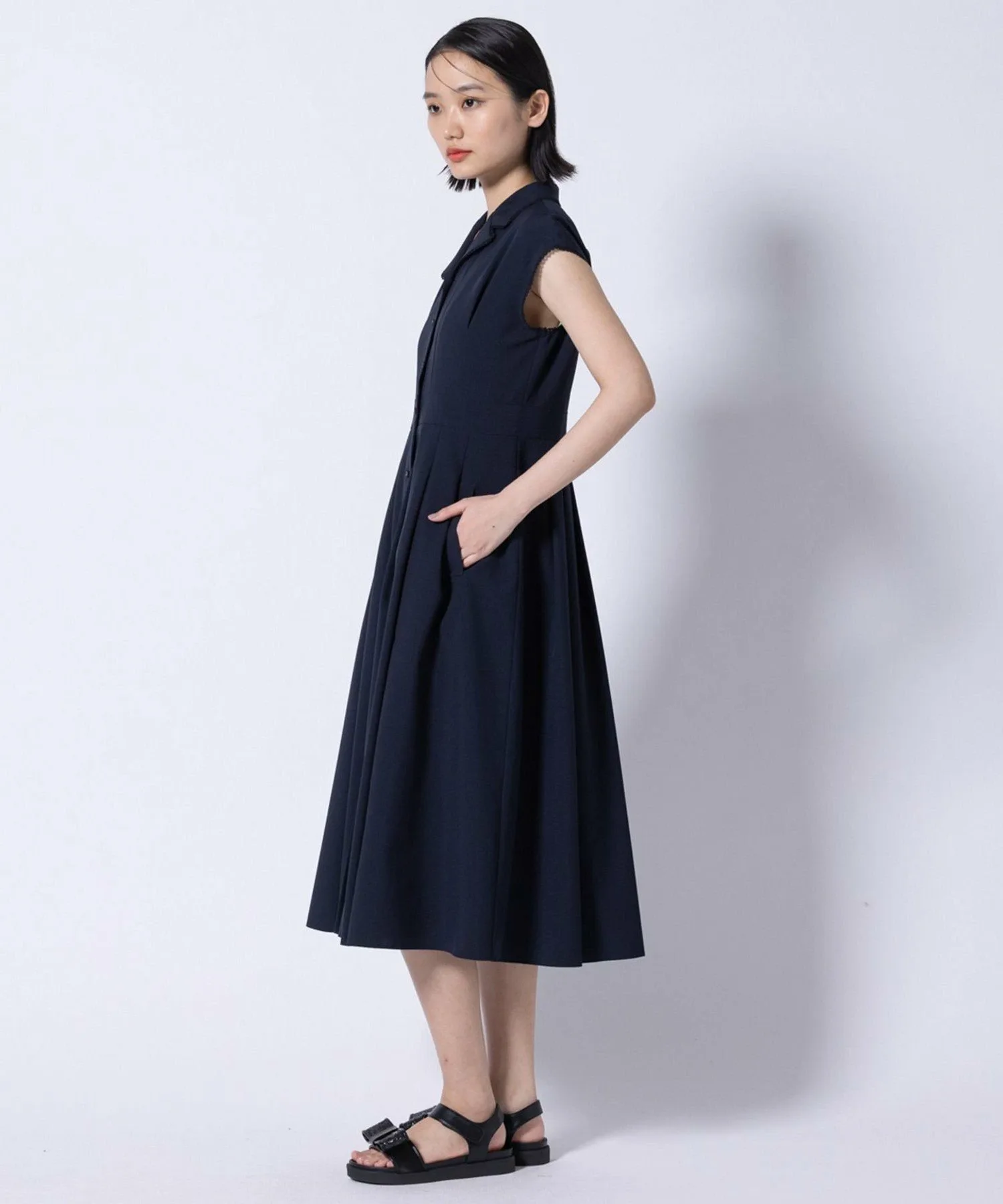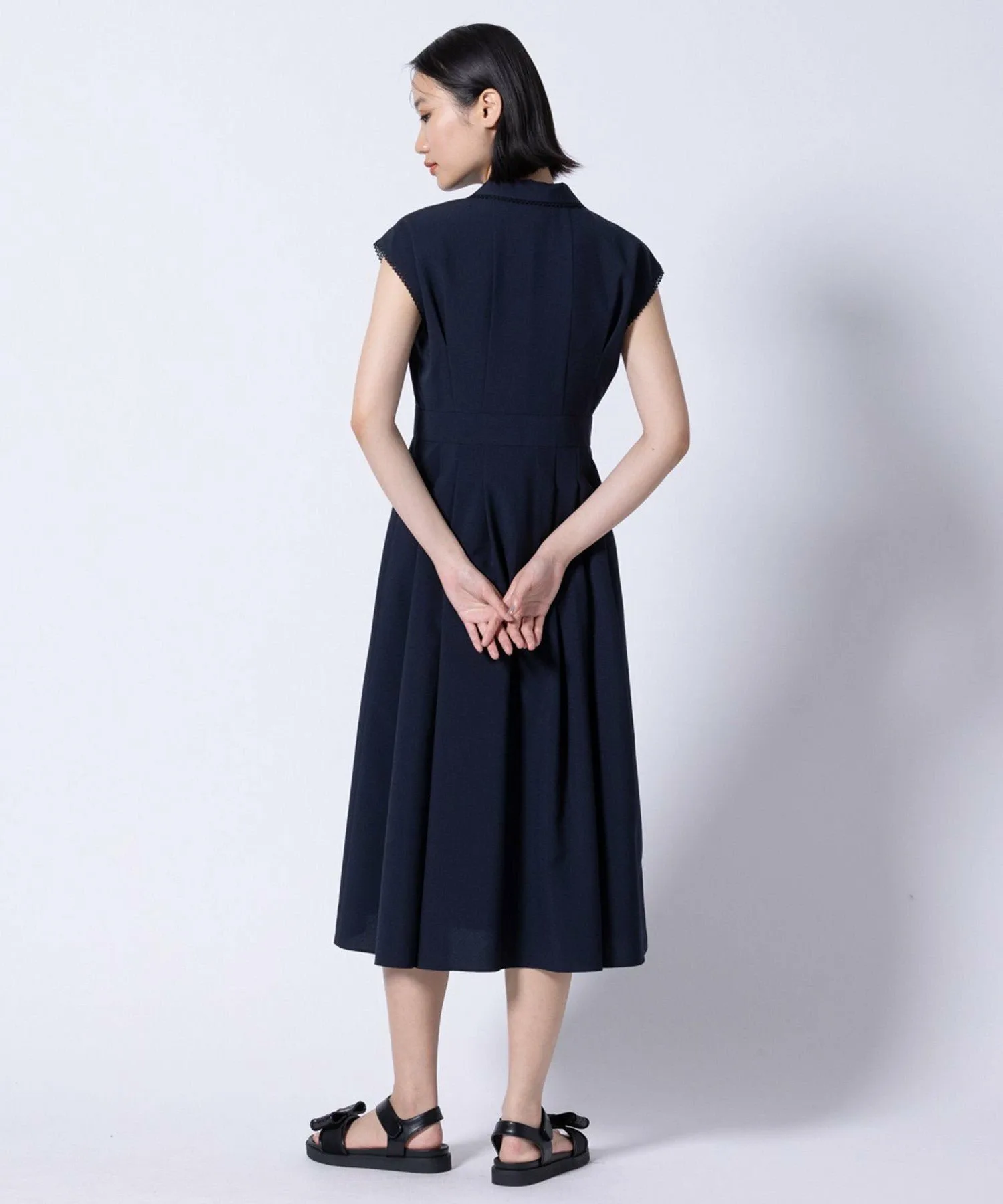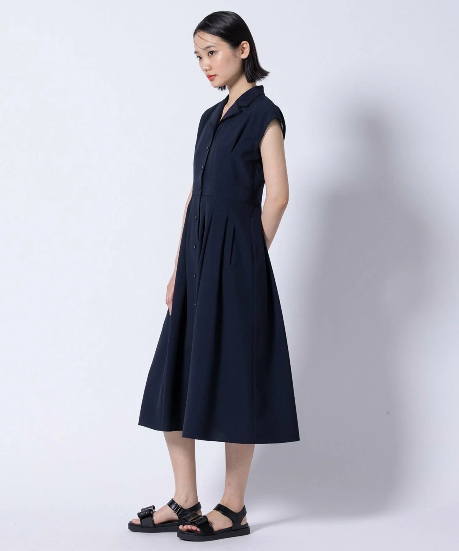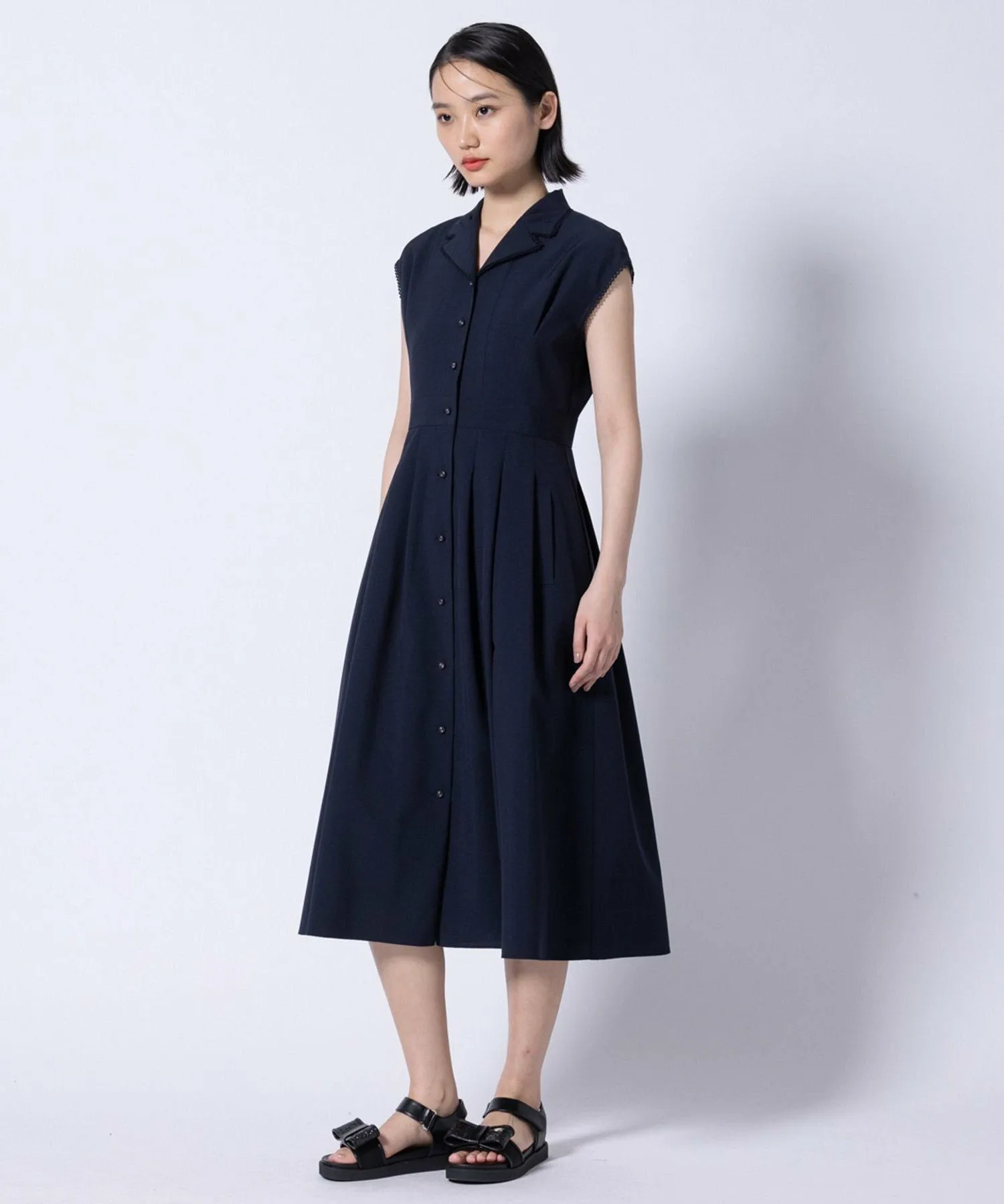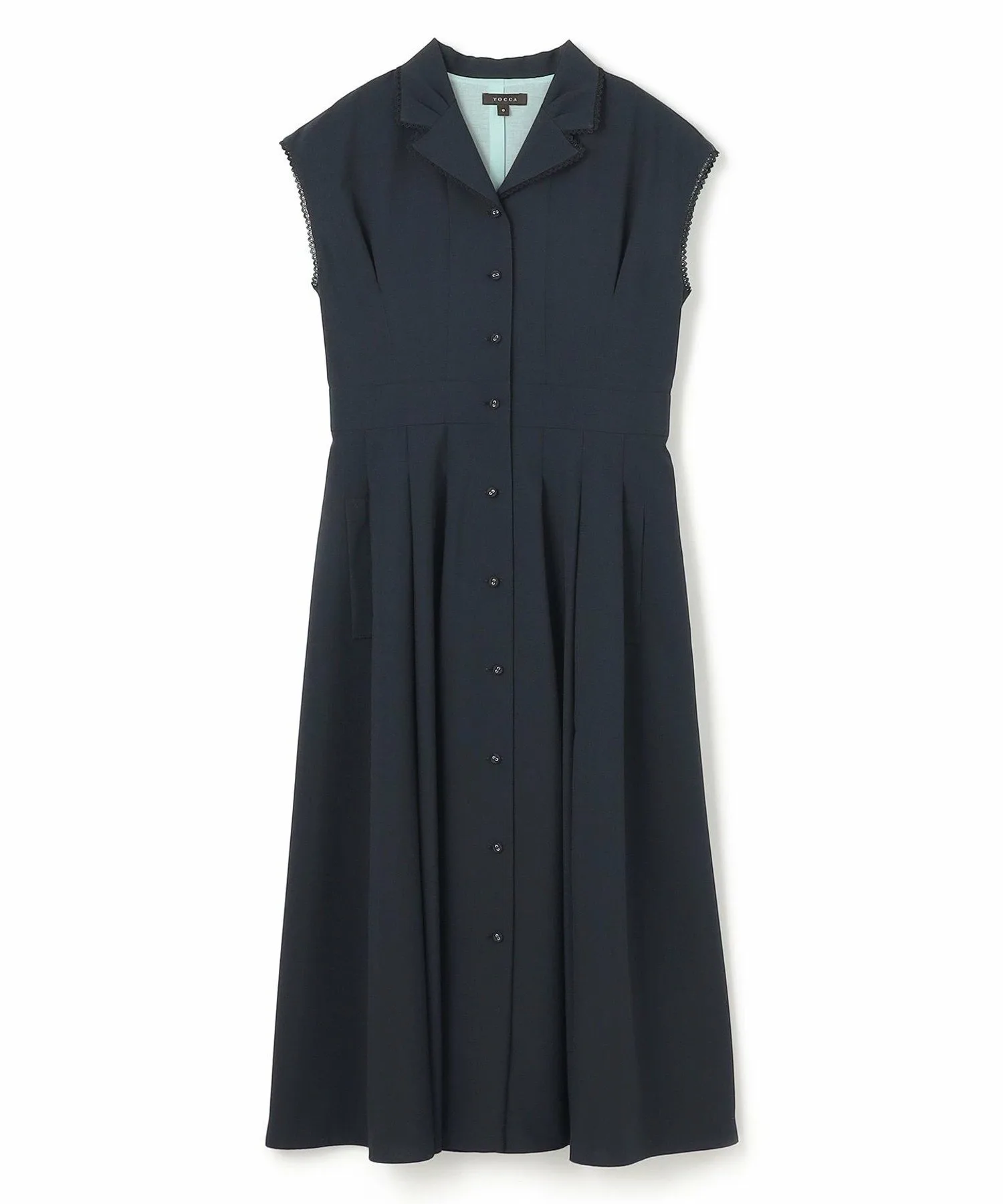 Это платье отличается классическим и элегантным дизайном с небольшим открытым воротником.
