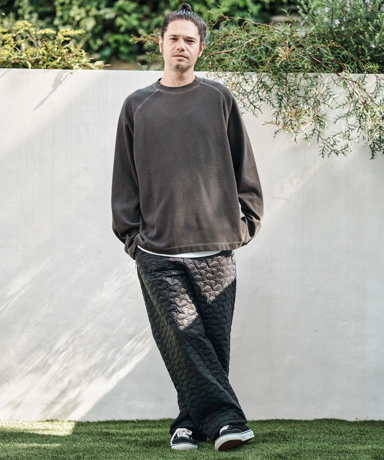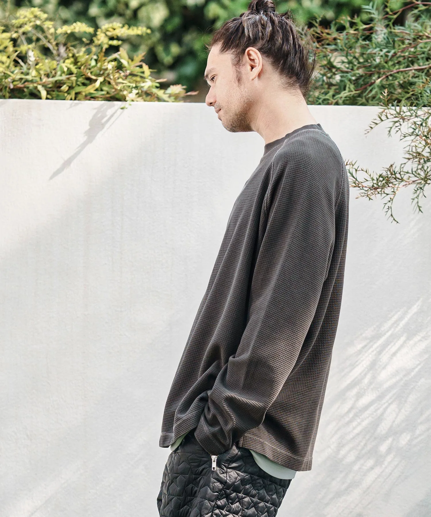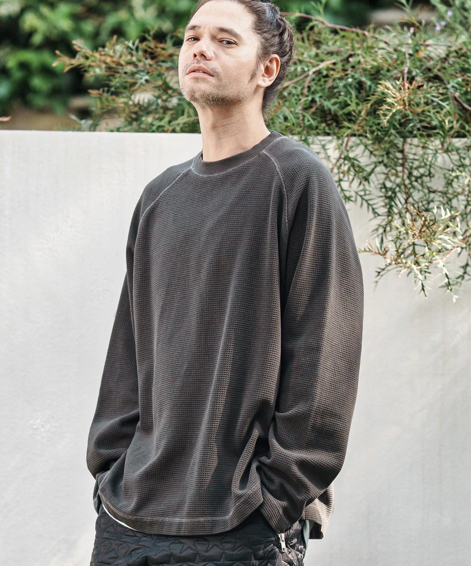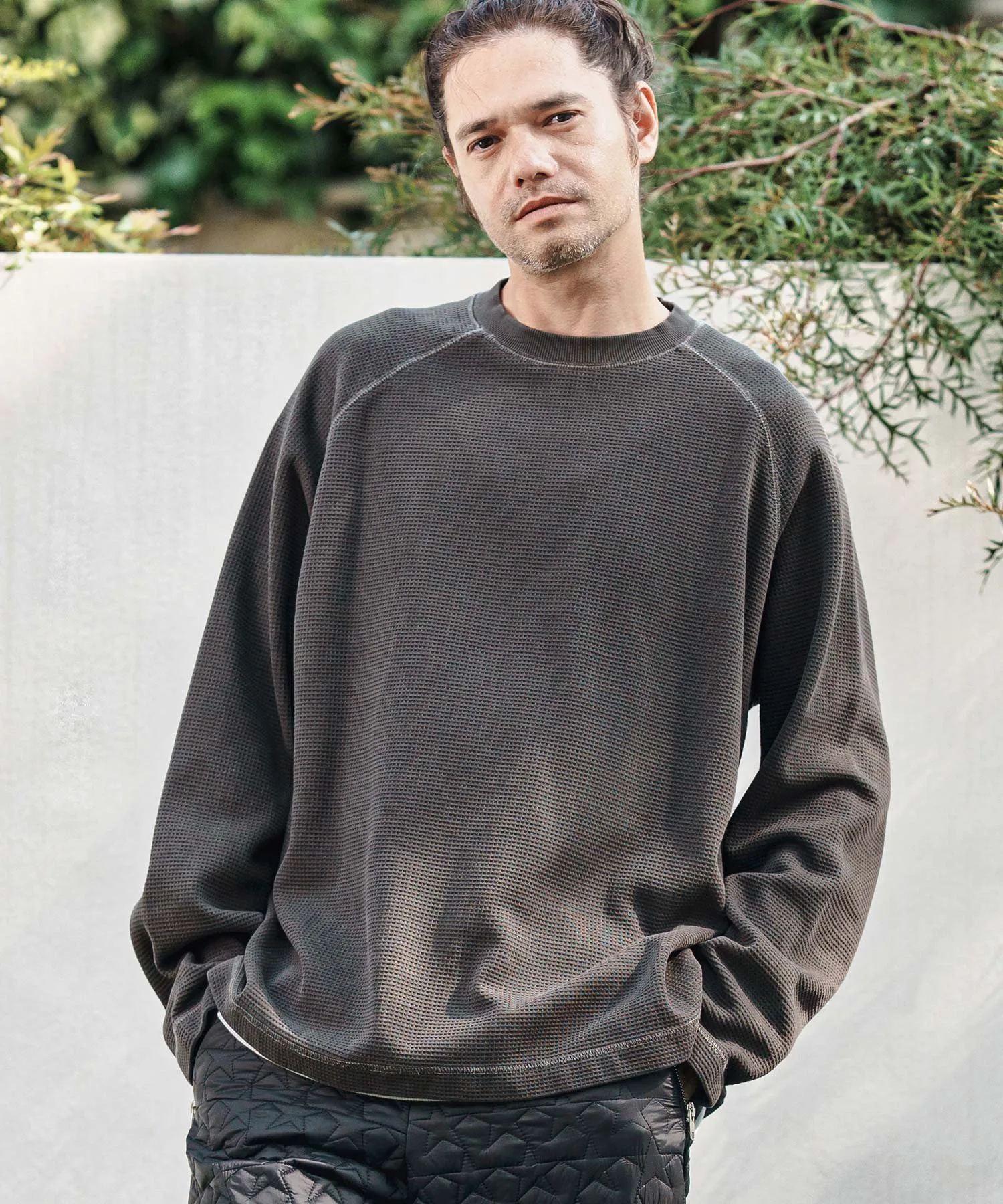 Текстурированная вафельная ткань окрашена пигментным красителем, что придает ей выцветший и текстурированный вид, несмотря на то, что она новая, и этот вид улучшается с каждой ноской.