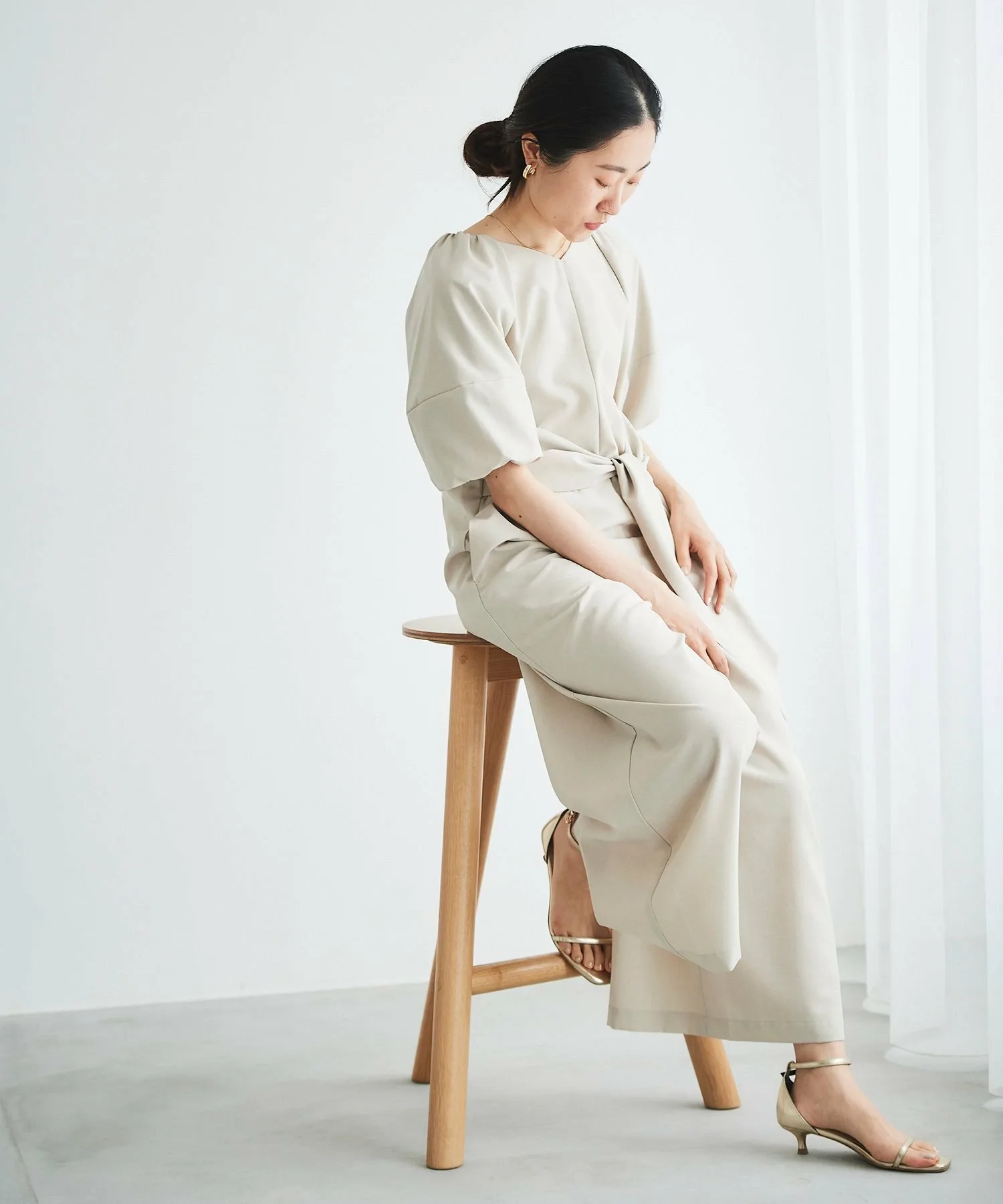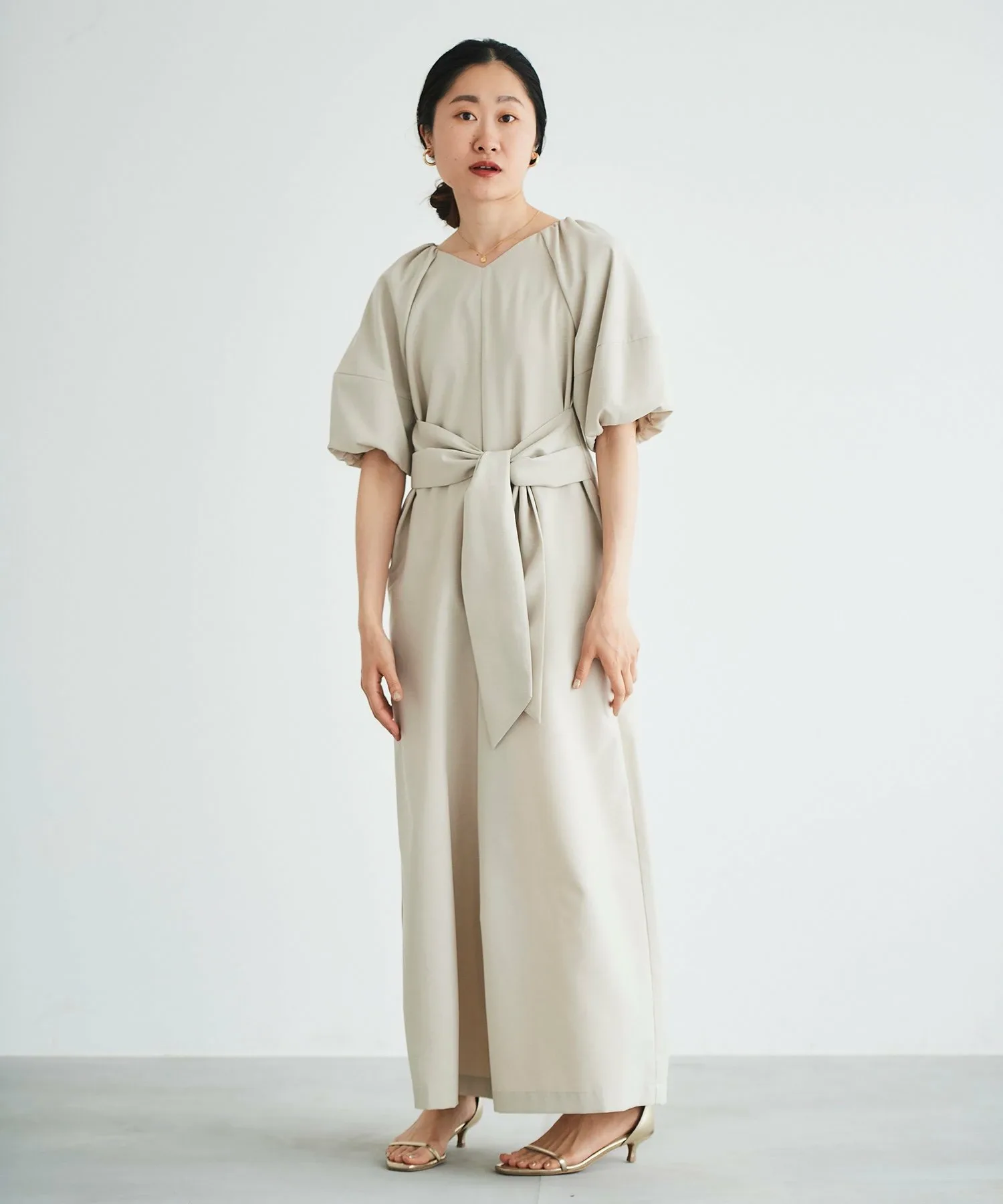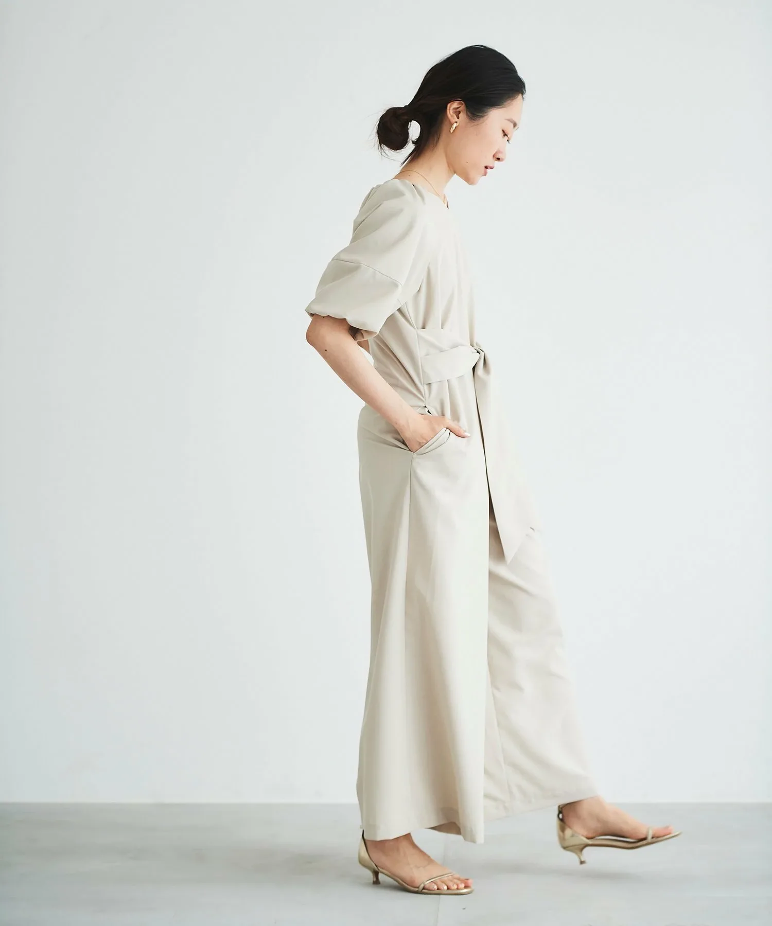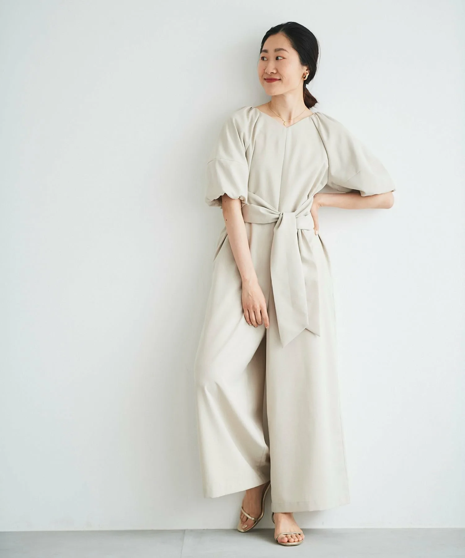 Изготовлен из легкой, гладкой, тонкой ткани с легким блеском, этот комбинезон излучает утонченность.