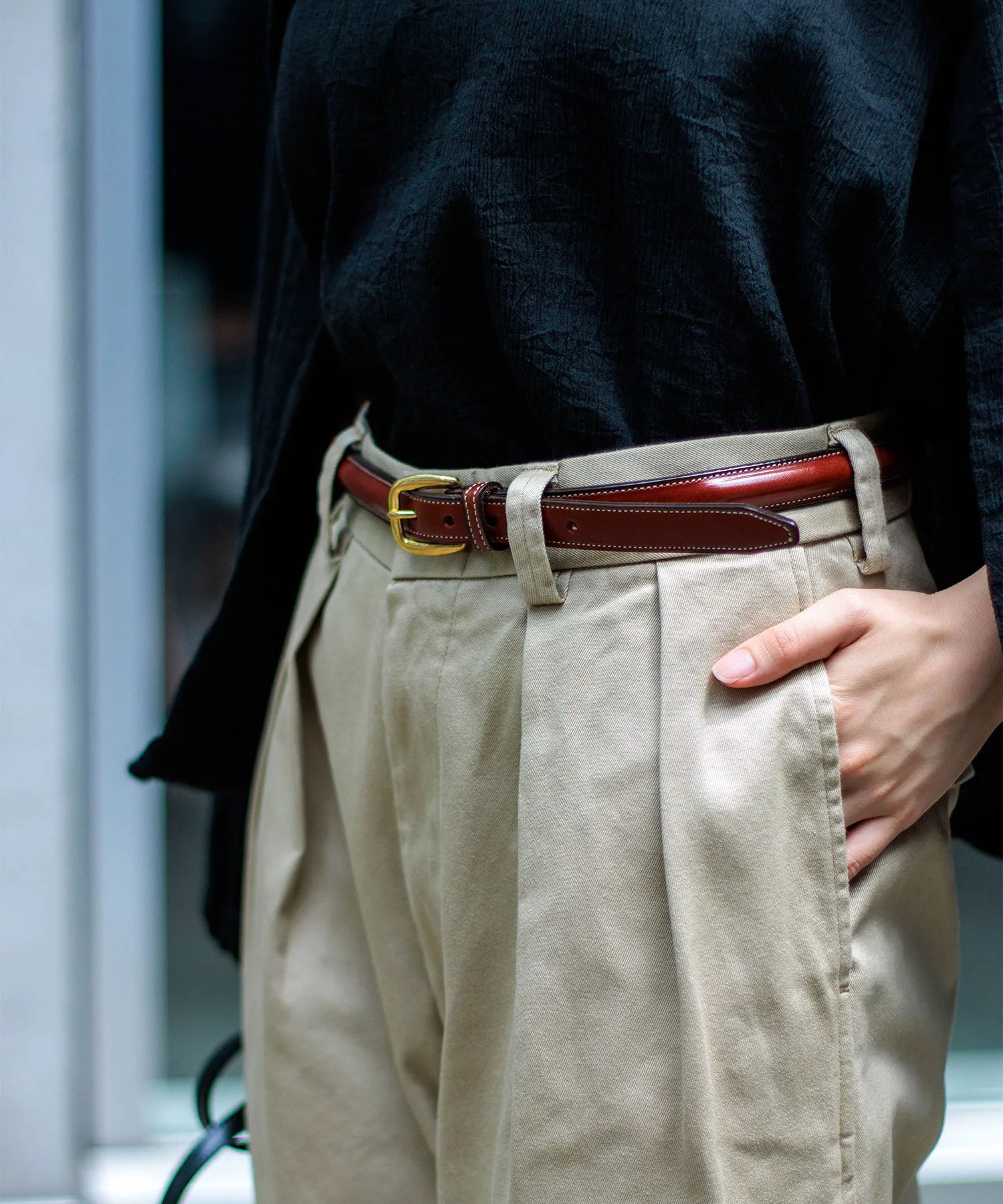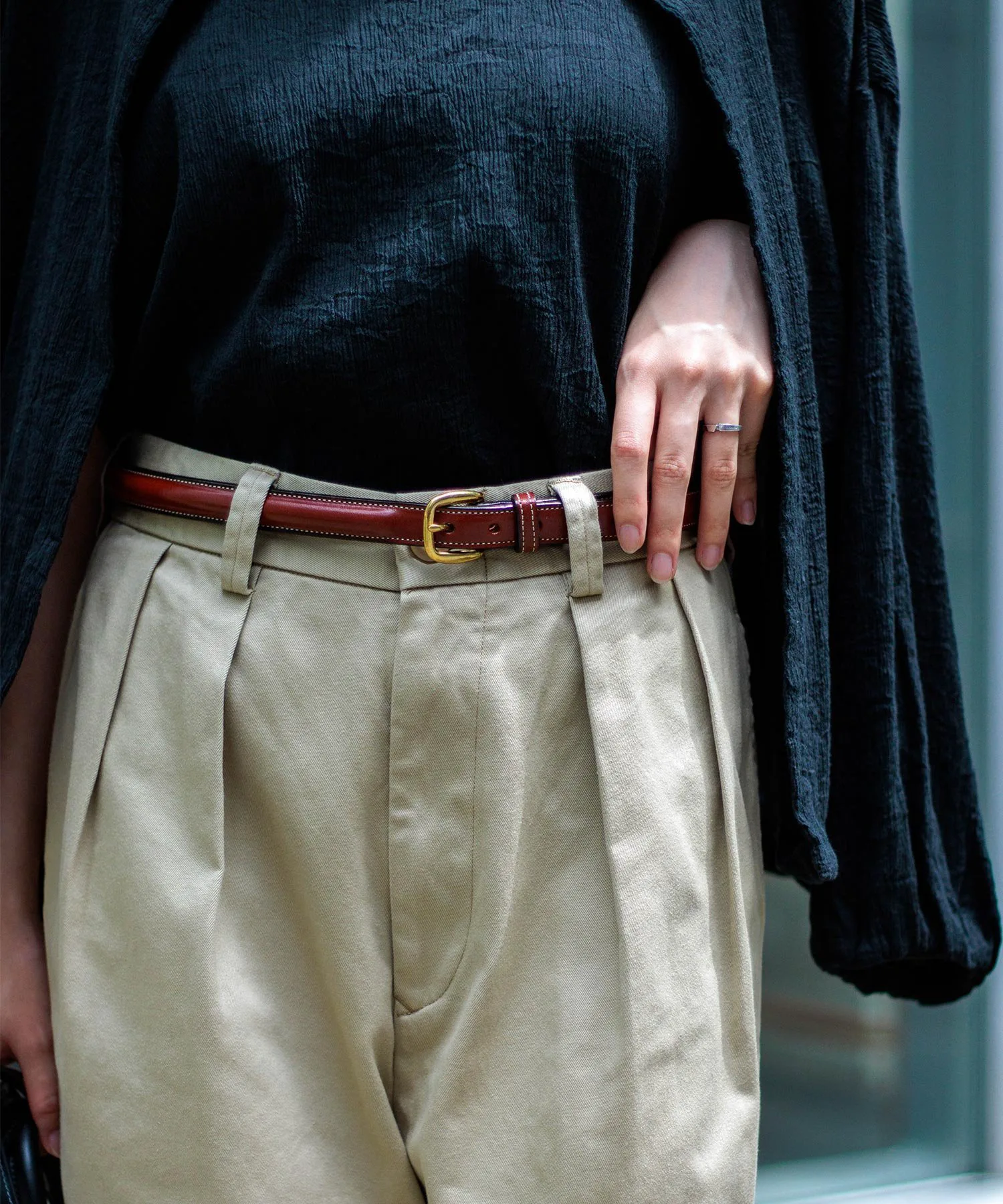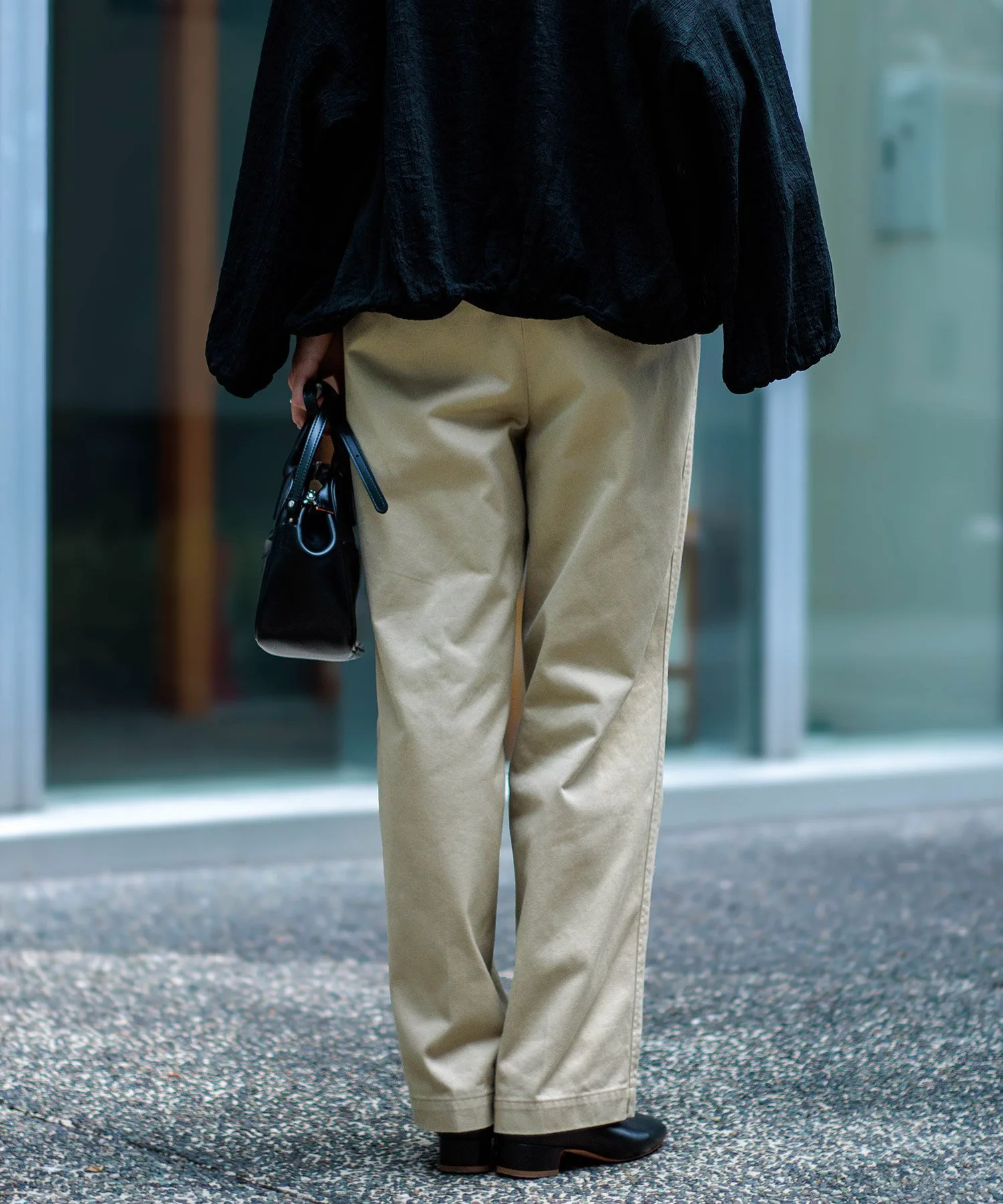 ◇ Отзыв о ношенииРычаг 160 см/Размер MДлина достаточно большая, чтобы закрыть пятку, а умеренно свободный пояс можно отрегулировать с помощью ремня. Хотя у него две складки, ткань не стягивает и удобна в носке.Также доступен в различных приглушенных цветах, идеально подходящих для осени и зимы. ◎