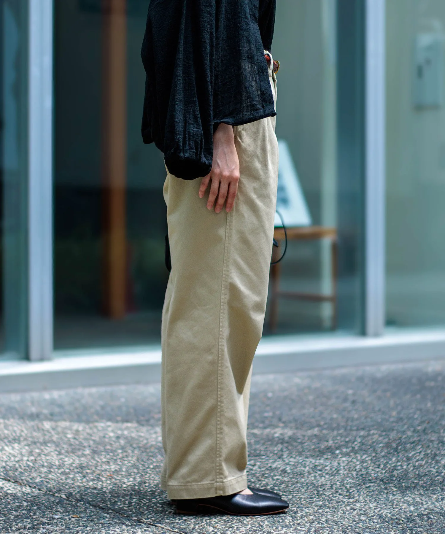 Изготовлены из ткани чинос, обладающей оптимальным объемом и легким блеском. Специальная обработка создает эффект потертости, напоминающий винтажные чиносы.Этот прочный материал не изнашивается при стирке и ношении, и вам не нужно беспокоиться о провисании коленей. Чем больше вы их носите, тем более изысканным будет их вид.Эти брюки-чинос имеют широкий, ностальгический силуэт и две затяжки спереди. Линии складок тщательно разработаны, чтобы оставаться на месте и ниспадать прямо вниз, создавая эффектный заправленный вид, придающий брюкам городской стиль. Размеры похожи на мужские брюки, но зауженный силуэт создает женственный, обтекаемый вид в области талии. ……………………Прозрачность: ОтсутствуетПодкладка: ОтсутствуетТолщина: СтандартнаяРастяжимость: ОтсутствуетКарманы: ЕстьМожно стирать: Да……………………100% хлопок