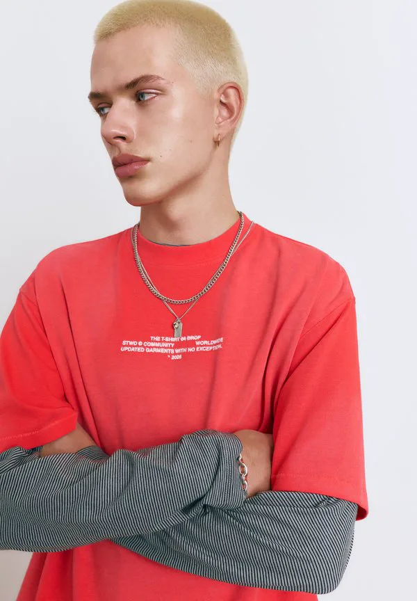 Футболка с коротким рукавом и принтом Pull&Bear, Red