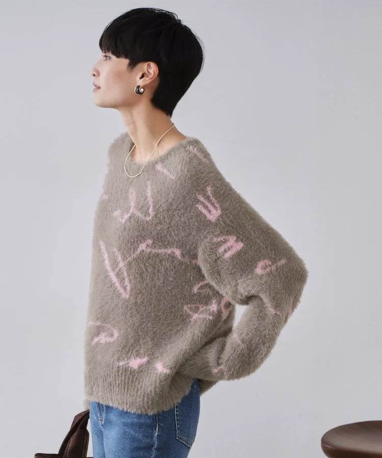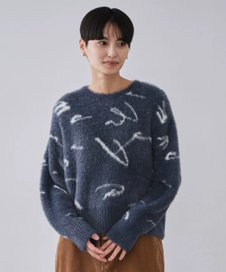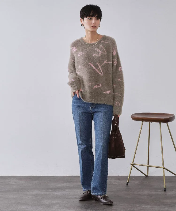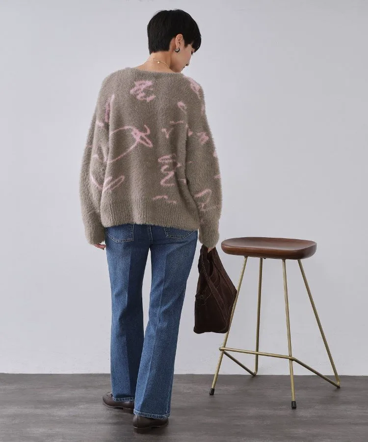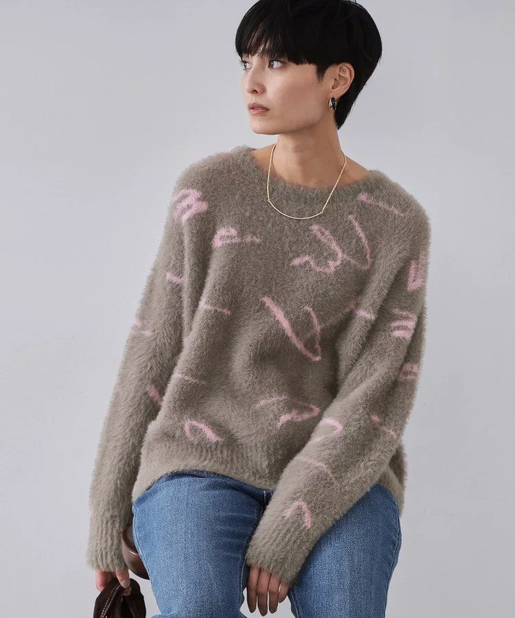 - Жаккардовый свитер с узором «пушистая шерсть», изготовленный из длинноворсовой пряжи с перьями.