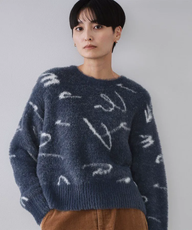 - Жаккардовый свитер с узором «пушистая шерсть», изготовленный из длинноворсовой пряжи с перьями.