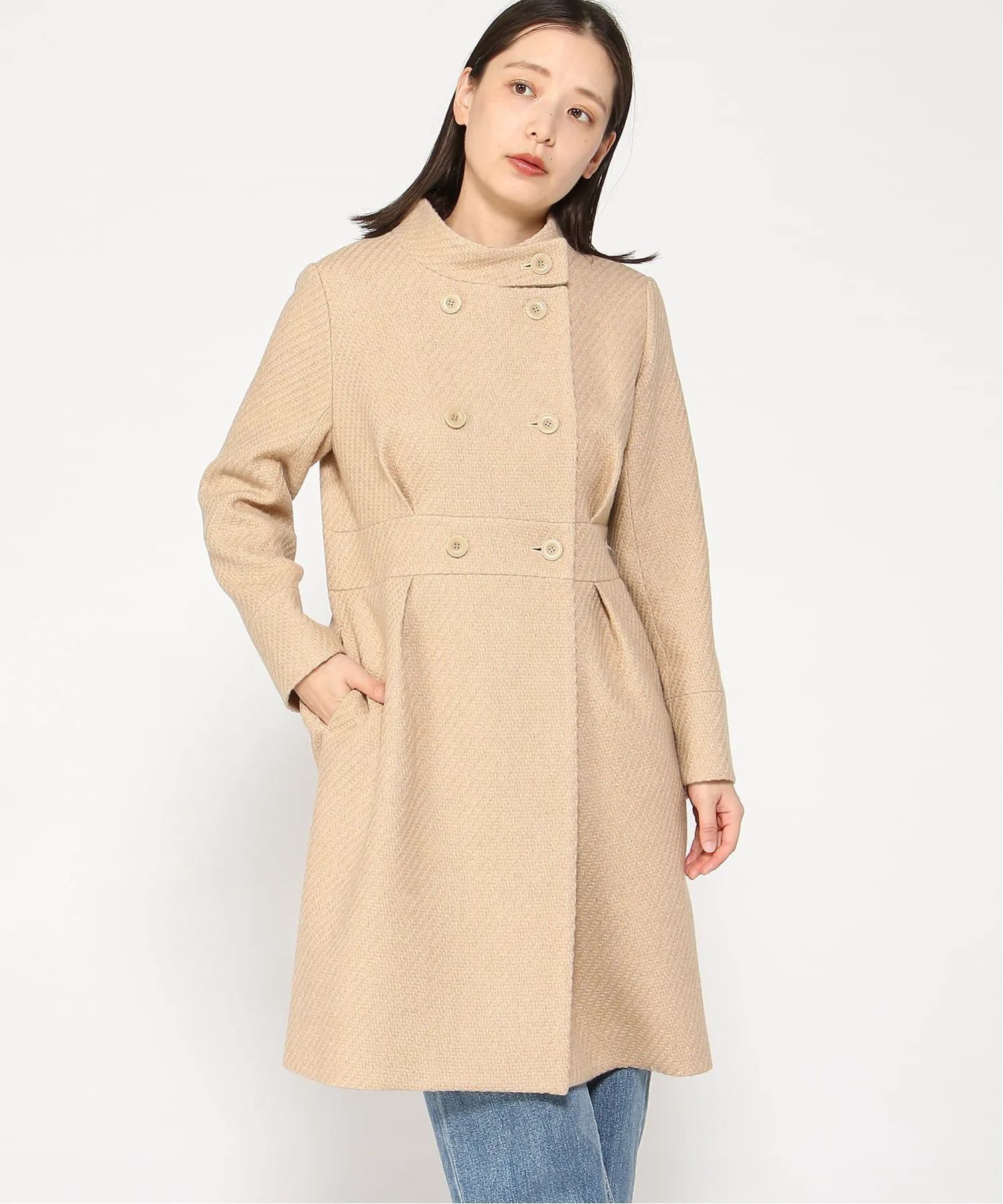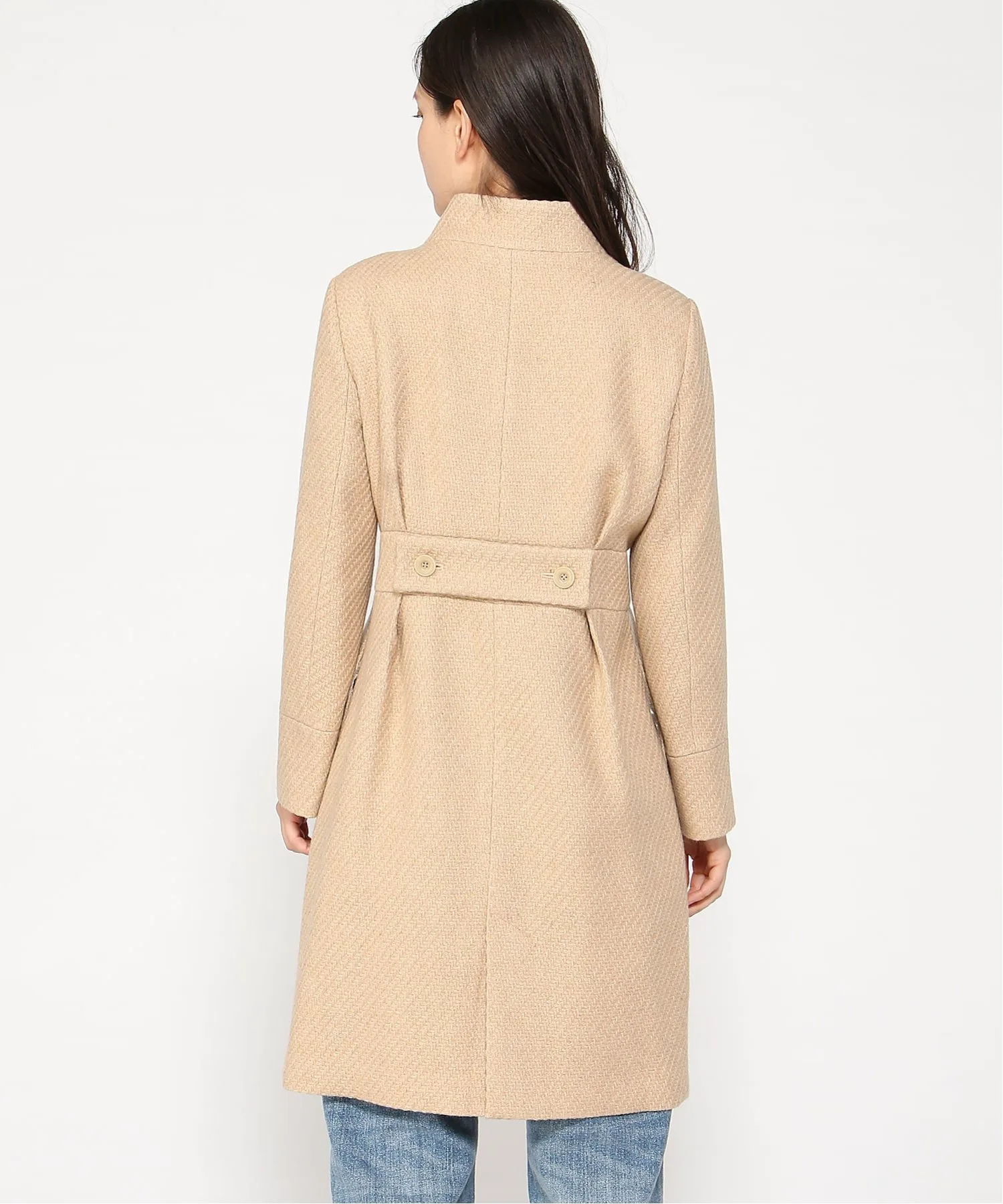 Выпущено пальто с длинными рукавами и пуговицами спереди, придающее ему слегка винтажный и ретро-стиль. Верхний материал выполнен из полиэстера, устойчивого к износу и складкам, и шерсти, обладающей отличными теплоизоляционными и влагопоглощающими свойствами и не вызывающей зуда. Классический силуэт идеально сочетается с женственной одеждой, а также с джинсами. Рост модели: 168 см, размер: 38.