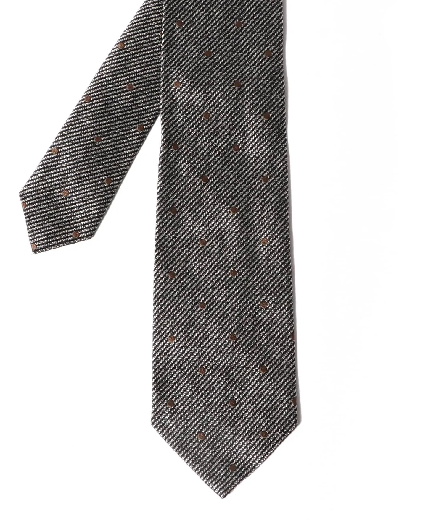 Шелковый галстук с узором из тонко расположенных полос и точек.