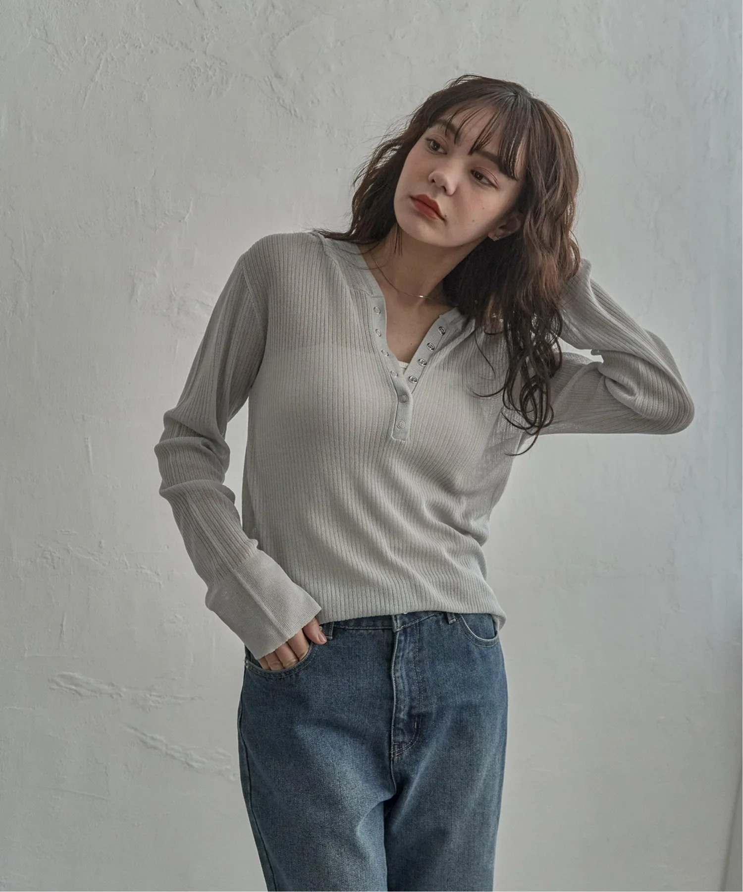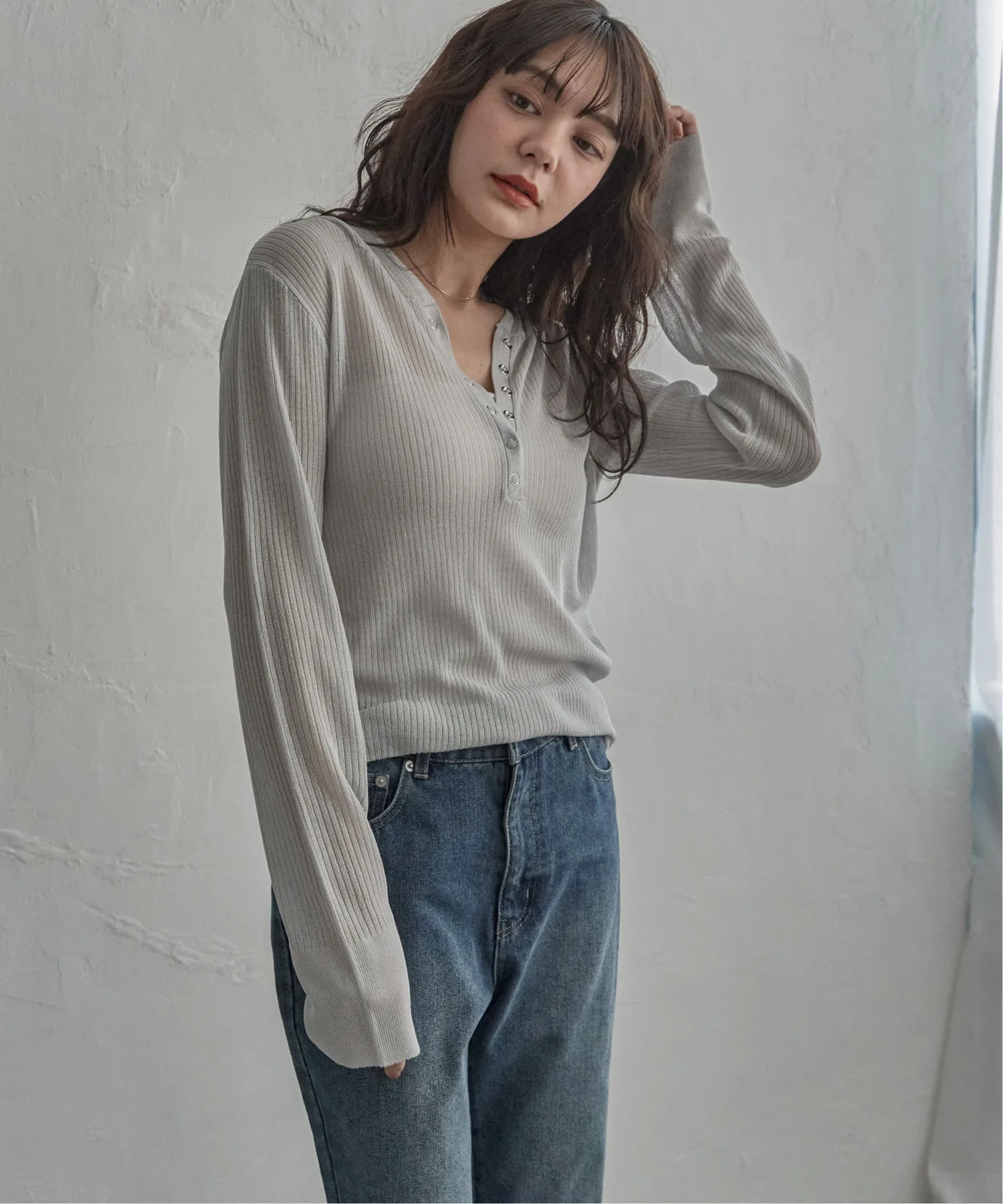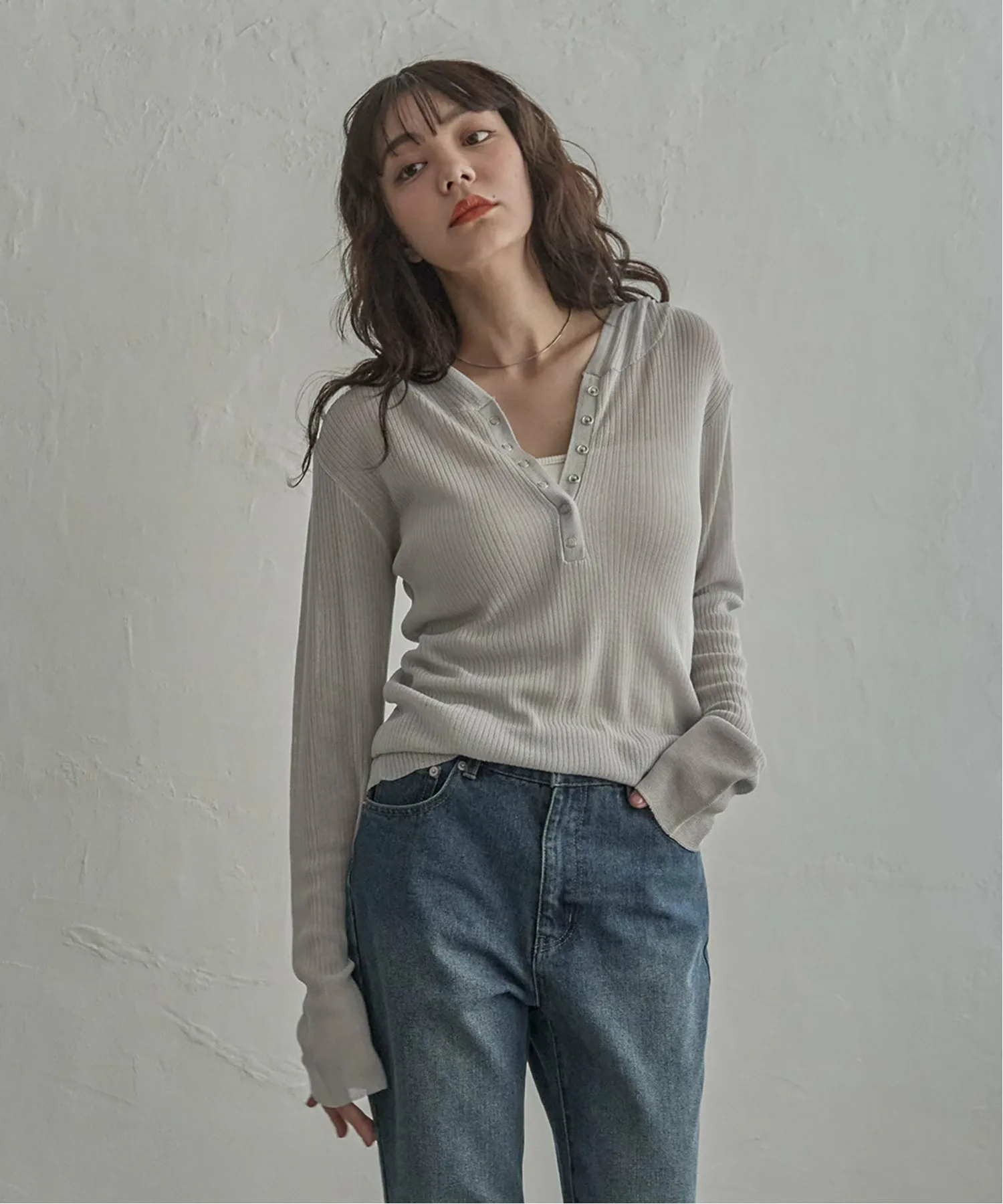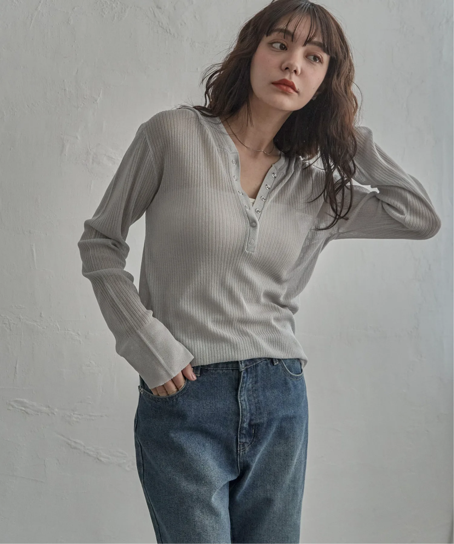 Эта толстовка-хенли с рваным краем выполнена из прозрачного материала и имеет воротник-хенли, что придает ей современный вид.