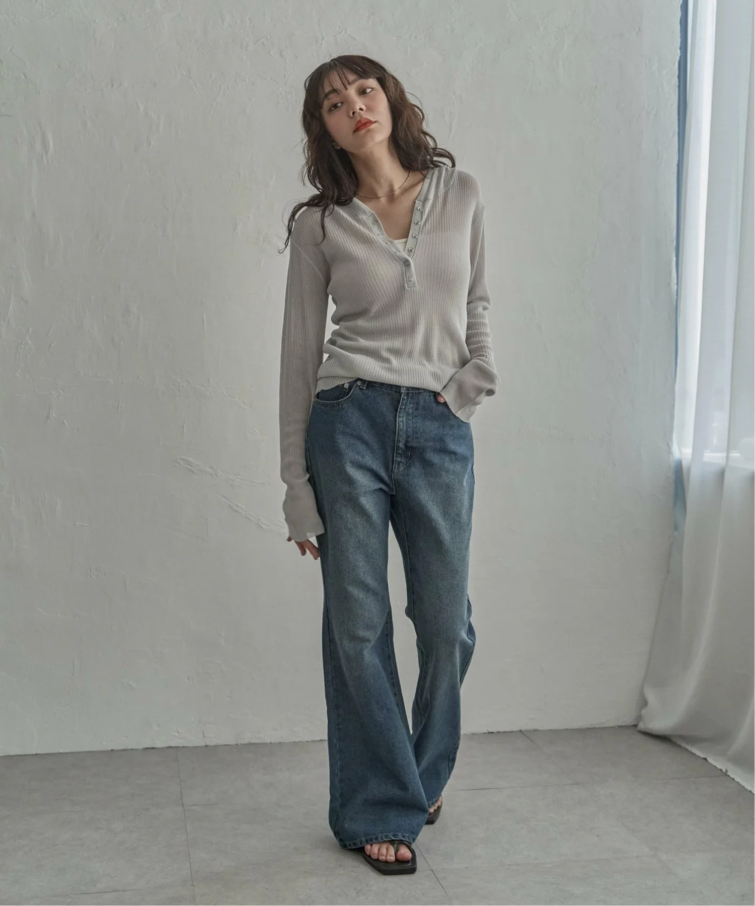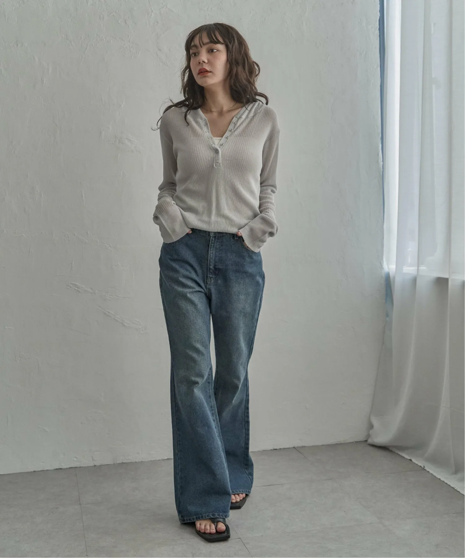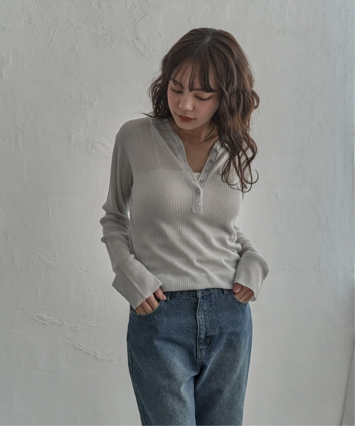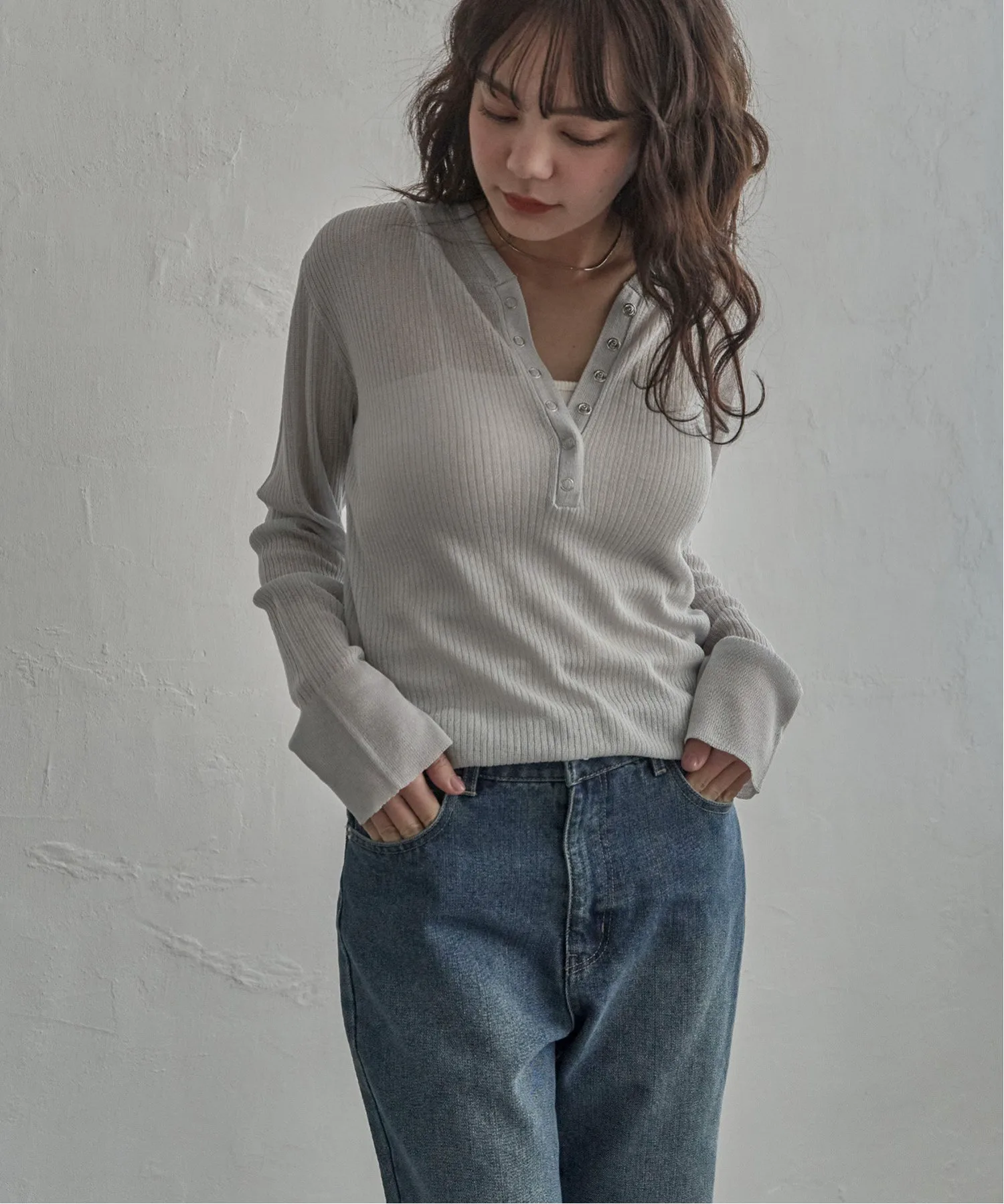 Эта толстовка-хенли с рваным краем выполнена из прозрачного материала и имеет воротник-хенли, что придает ей современный вид.