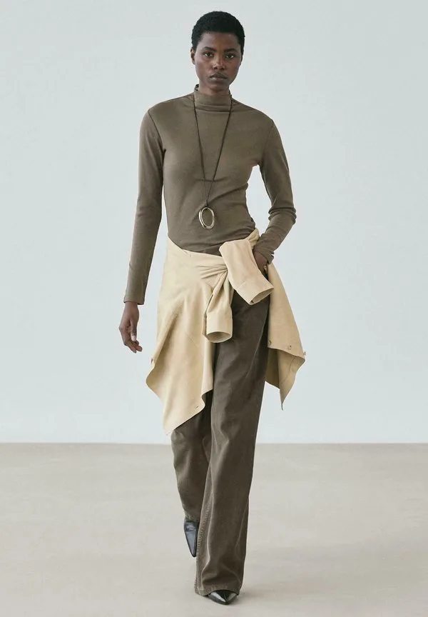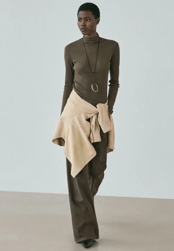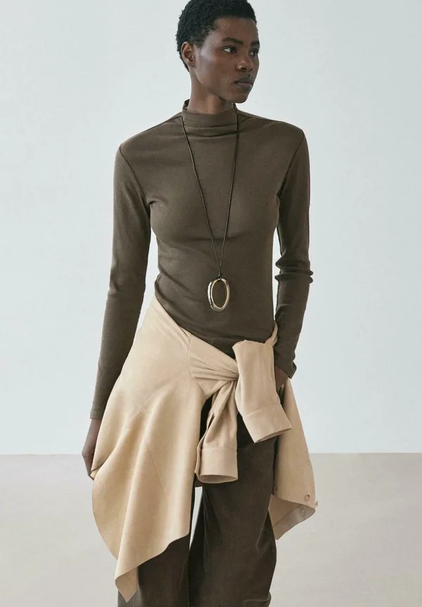 Топ с длинными рукавами в рубчик Massimo Dutti, Brown