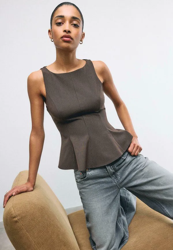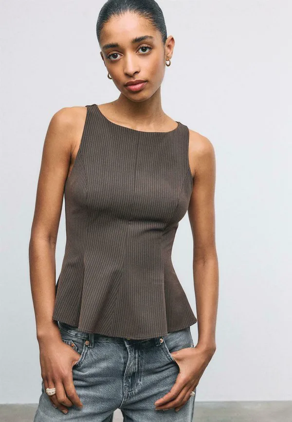 Топ без рукавов с баской Stradivarius, Brown