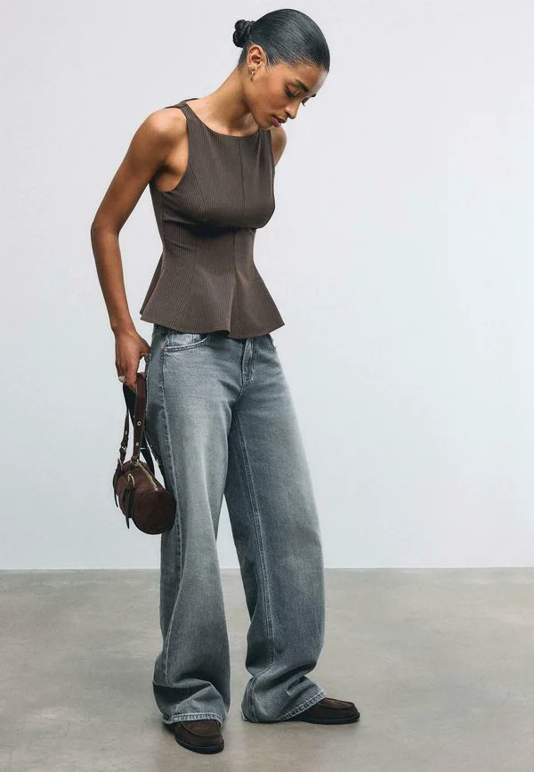 Топ без рукавов с баской Stradivarius, Brown 3 750₽
