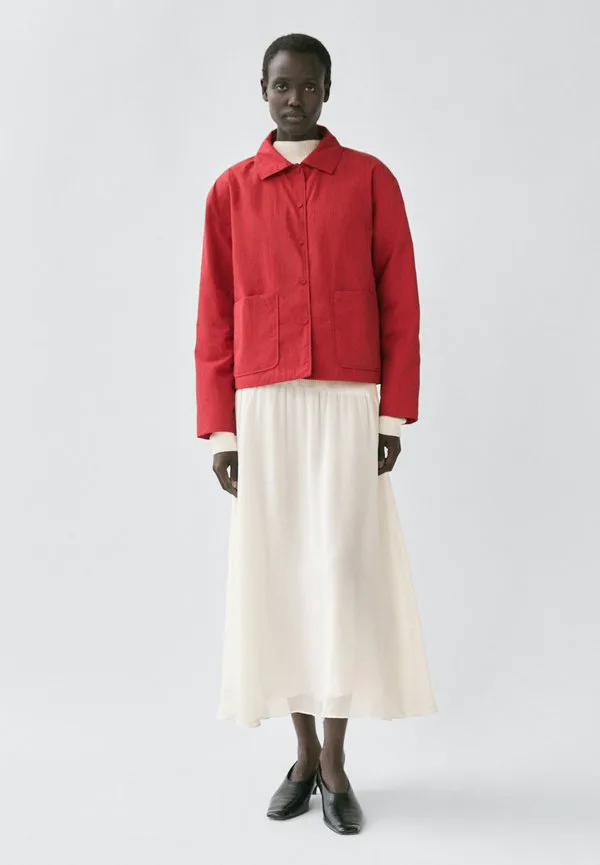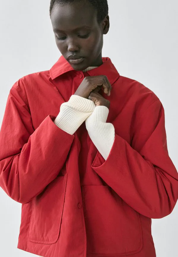 Короткая стеганая легкая куртка с карманами Massimo Dutti, Red