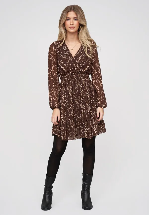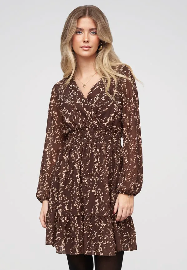 Платье с длинными рукавами и абстрактным принтом. Cloud 5Ive, Brown
