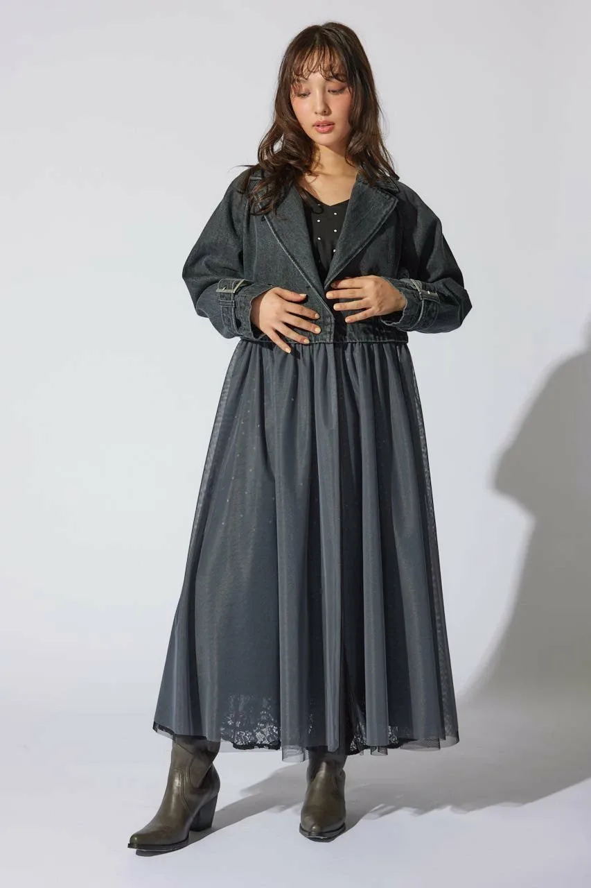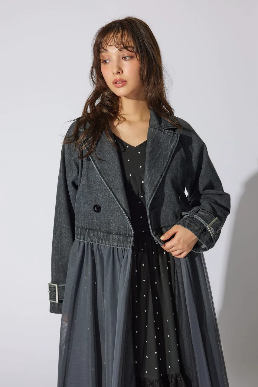 Продуманный дизайн сочетает в себе короткое пальто с тюлем, прикрепленным ниже талии.