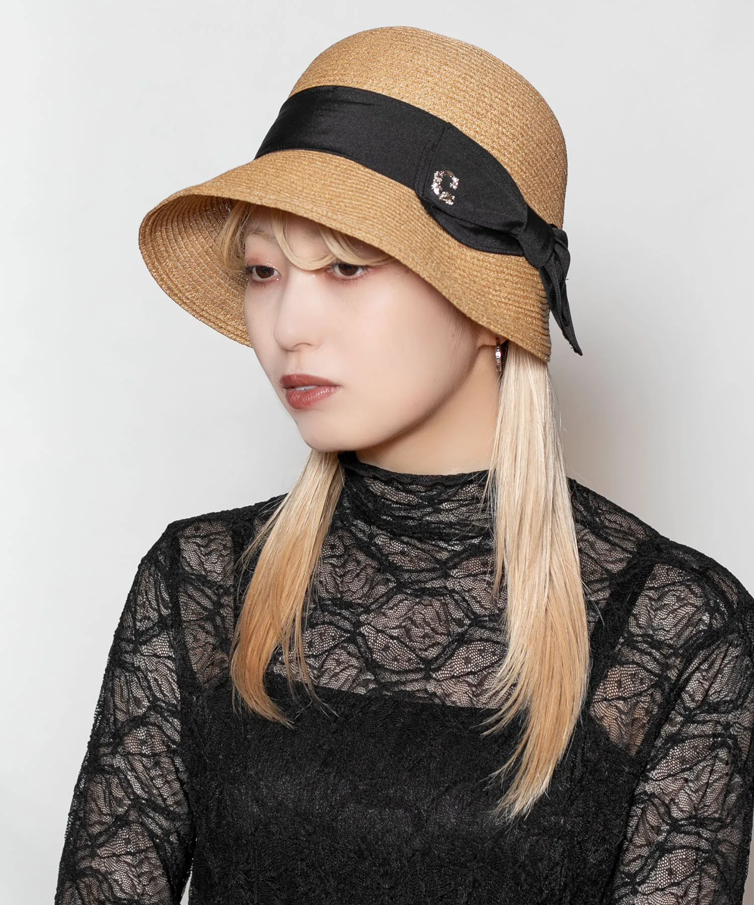 Длинные поля, мягко обрамляющие лицо, создают элегантный образ и также рекомендуются в качестве солнцезащитного средства. Область талии украшена лентой из грогрена и С-образным вырезом. Не слишком приторный дизайн хорошо сочетается с широким спектром нарядов.