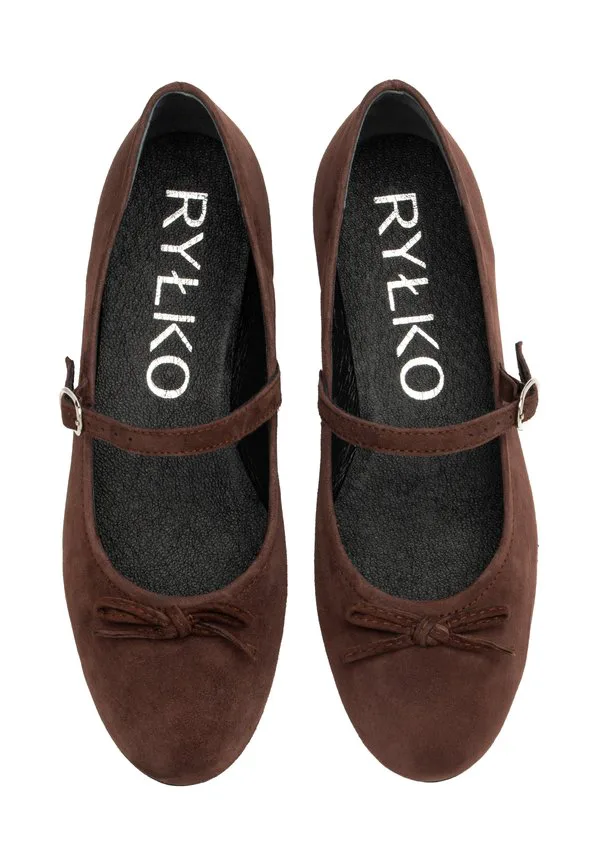 Балетки с ремешком на щиколотке Ryłko, Brown