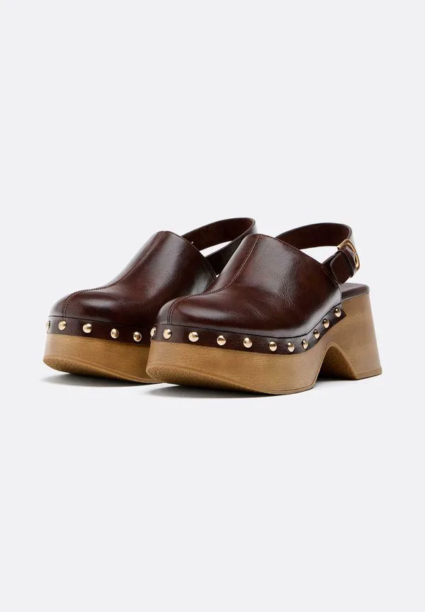 Сабо на платформе с шипами Stradivarius, Brown