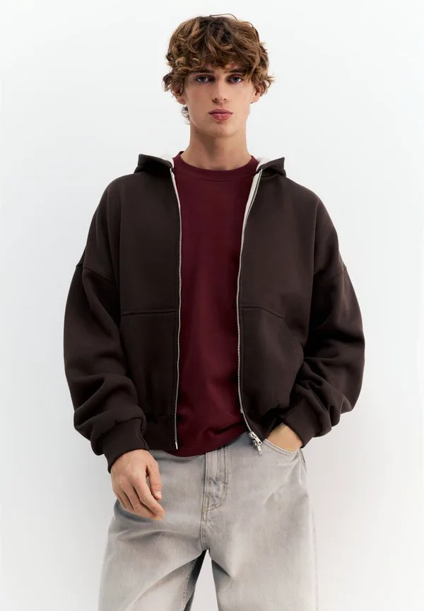 Толстовка с капюшоном на молнии Pull&Bear, Brown