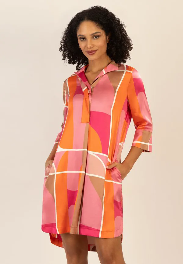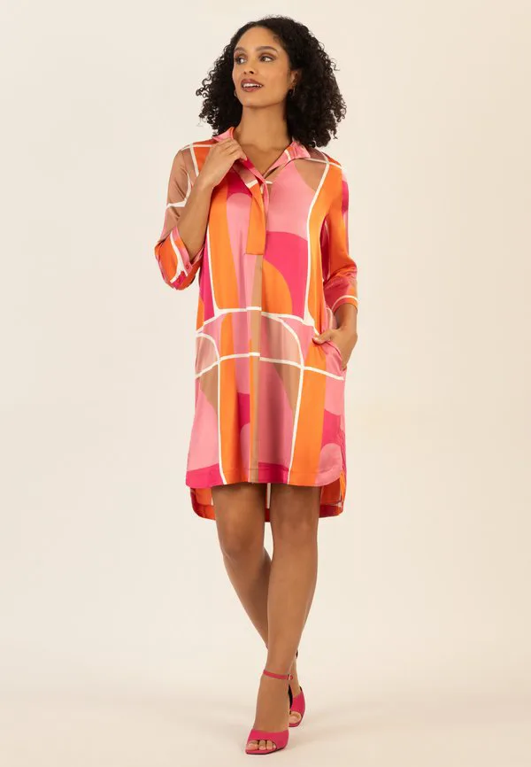 Платье-Рубашка kurzes bedrucktes Apart, Rosa-Multicolor