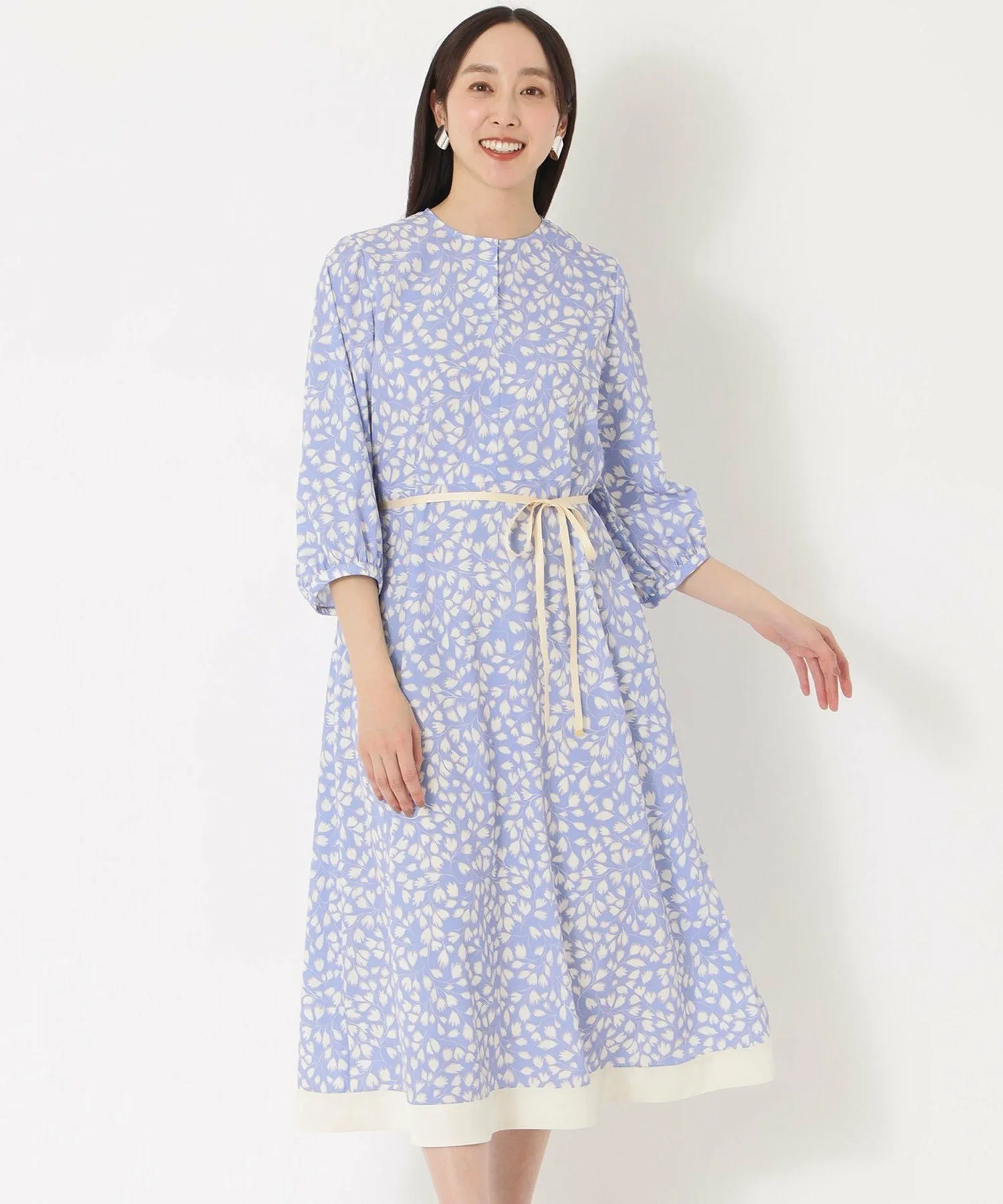 Платье приталенного силуэта с расклешенной юбкой, украшенное контрастной отделкой по низу. Вырез горловины и эластичные манжеты делают его удобным для ношения любой женщиной. В комплекте идет хлопковый пояс для большей универсальности стиля.