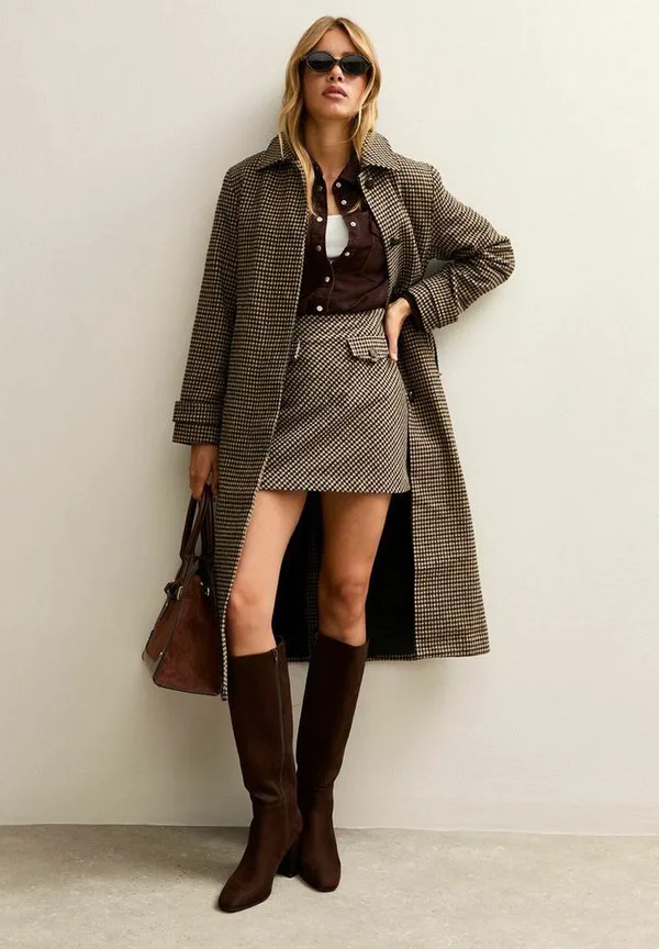 Мини-Юбка а-силуэта в клетку New Look, Brown Pattern