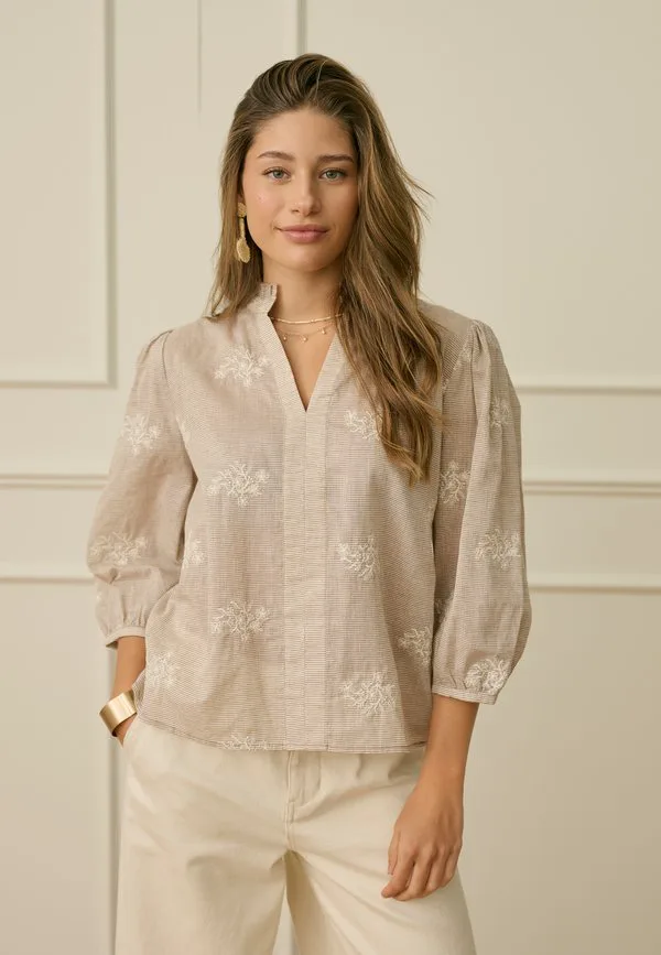 Блузка crkorey Cream, Brown, White Stripe