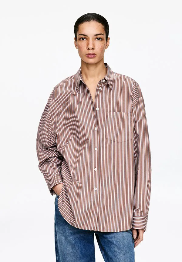 Блузка на пуговицах Arket, Brown/White