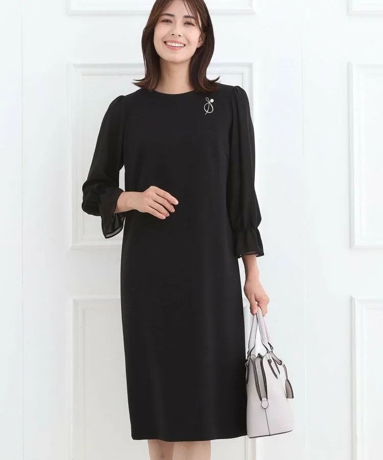 Главные особенности этого платья — прямой силуэт и элегантные рукава-«конфетки», выполненные из легкого шифона.