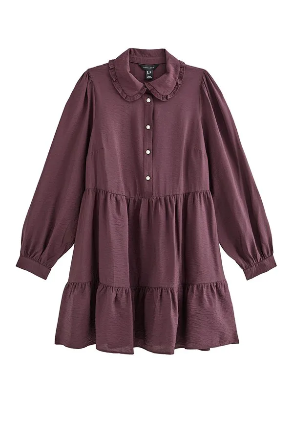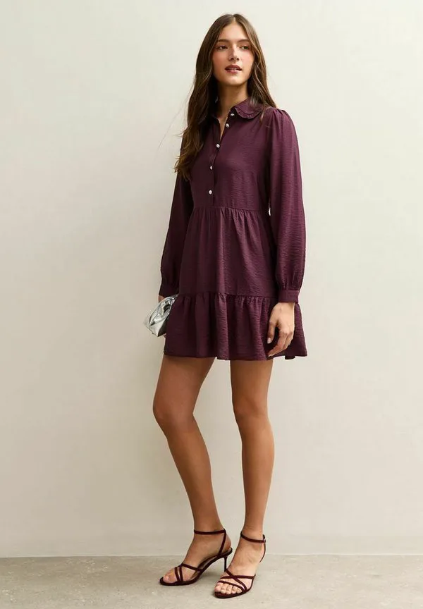 Многоярусное мини-платье-рубашка New Look, Burgundy