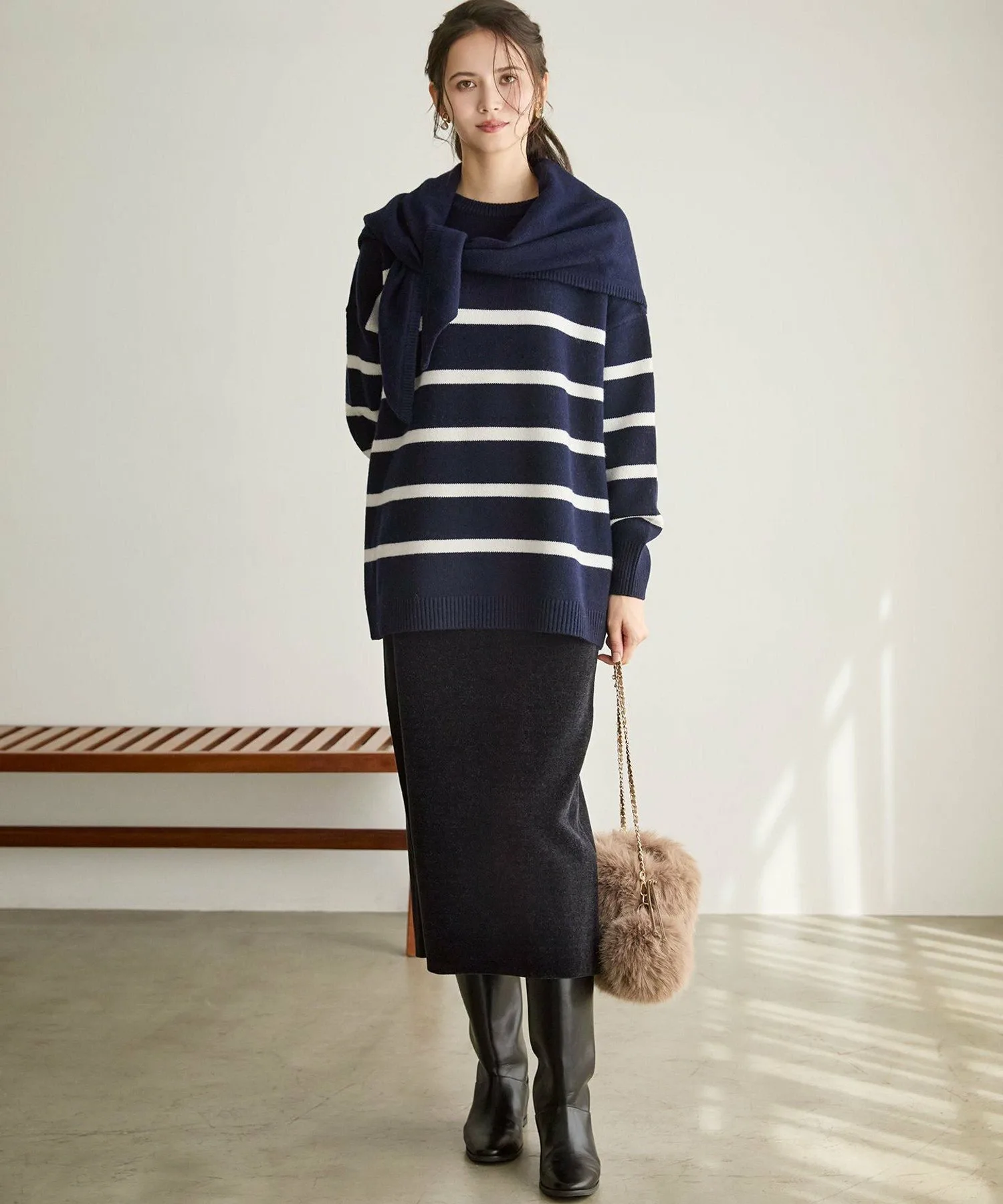 Этот пуловер имеет силуэт, который мягко облегает тело, создавая расслабленный, но в то же время изысканный образ. Удлиненная длина естественным образом скрывает любые недостатки в области бедер. Изготовленный из мягкой высококачественной шерсти, он обеспечивает ощущение комфорта и изысканный, утонченный вид. Сочетайте его с шортами для модного, расслабленного образа. Эта универсальная вещь идеально подходит для самых разных случаев, от отдыха в выходные до неформальных прогулок. Доступен в трех цветах: теплая коричневая полосатая рубашка (#130), изысканная темно-синяя полосатая рубашка (#175) и яркая, изысканная светло-серая полосатая рубашка (#103).