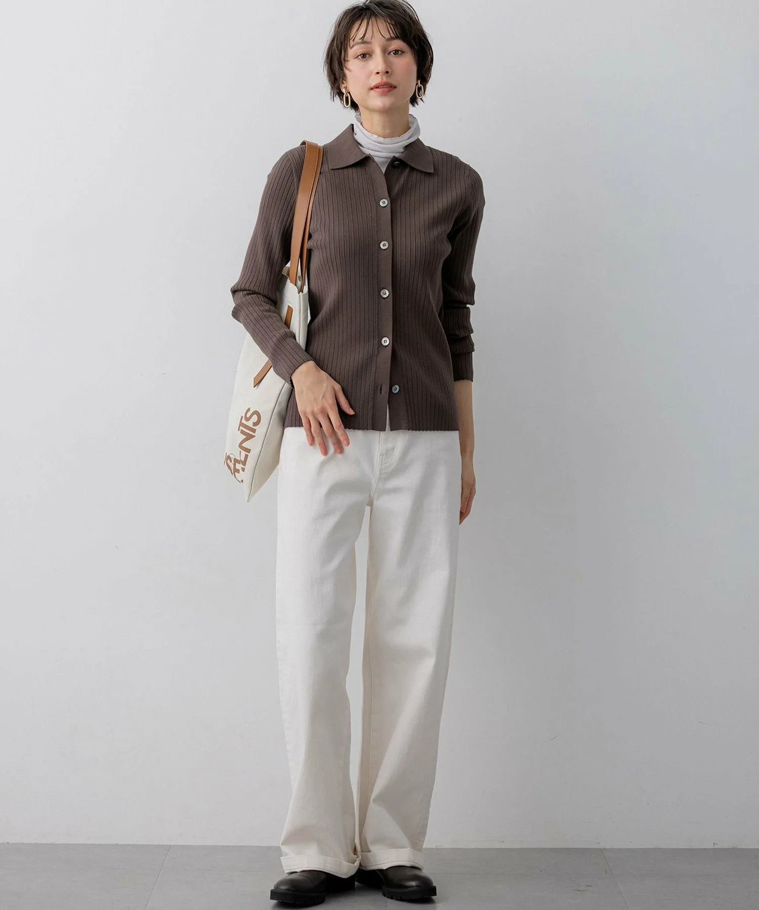 Этот современный трикотажный поло отличается обтекаемым вертикальным эффектом. Широкая резинка позволяет носить его застегнутым на все пуговицы как пуловер или как кардиган. Расстегнув несколько нижних пуговиц, он хорошо сочетается с широкими брюками и объемными юбками, позволяя создавать разнообразные силуэты в сочетании с различными вариантами низа. Этот универсальный предмет гардероба предлагает широкий спектр вариантов стилизации. Доступен в трех цветах: шикарный черный (#005), элегантный и мягкий бежевый (#033) и глубокий, приглушенный темно-коричневый (#035).