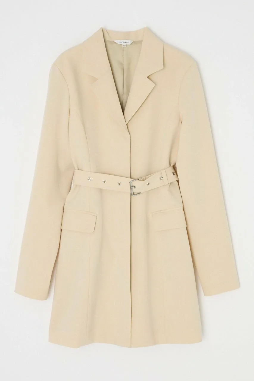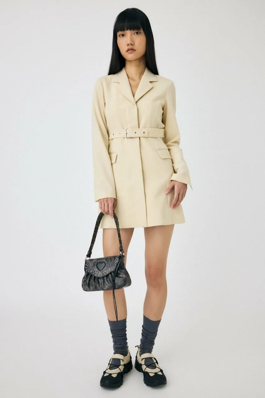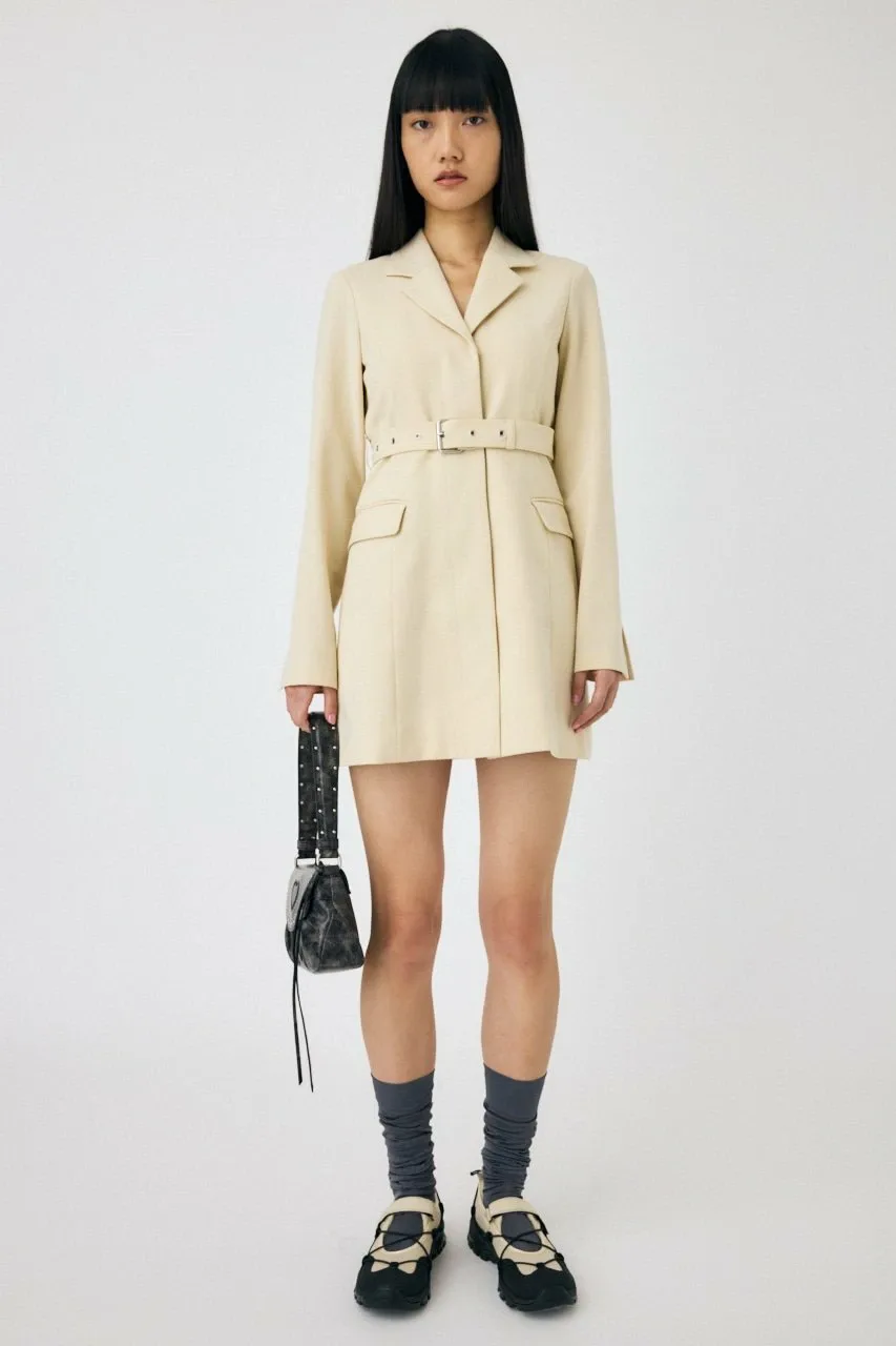 Это мини-платье сочетает в себе традиционный стиль блейзера и смелый дизайн с поясом на талии.