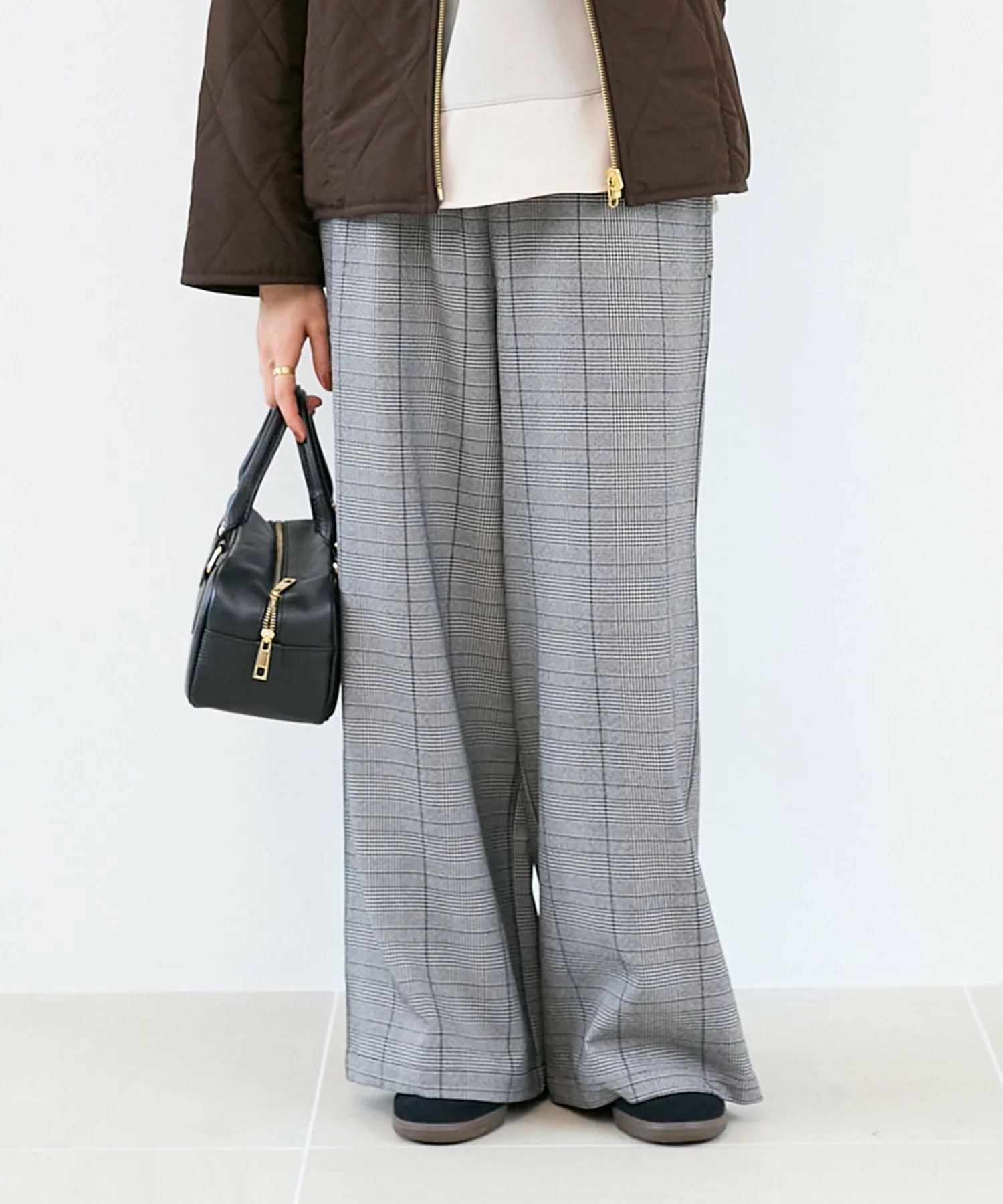 Эти клетчатые брюки с широкими штанинами станут удобным дополнением к вашему гардеробу на осень и зиму. Они имеют изысканный широкий прямой силуэт, не слишком объемный. ●Основные характеристики: Отделка по бокам добавляет изысканности. Изготовлены из 100% полиэстера, ткань легкая и гладкая. Эластичный пояс обеспечивает комфортную посадку. Инструкции по уходу см. на упаковке. Из-за условий освещения фактический цвет может отличаться. Также цвет изделия может немного отличаться от изображения из-за настроек вашего компьютера или смартфона. Для определения фактического цвета см. увеличенное изображение изделия. [Примечания] Изделие на изображении является образцом. Информация о размерах приведена только для справки. Характеристики и отделка могут немного отличаться от фактического изделия. Обратите внимание на возможное выцветание и перенос цвета из-за трения или воздействия воды.