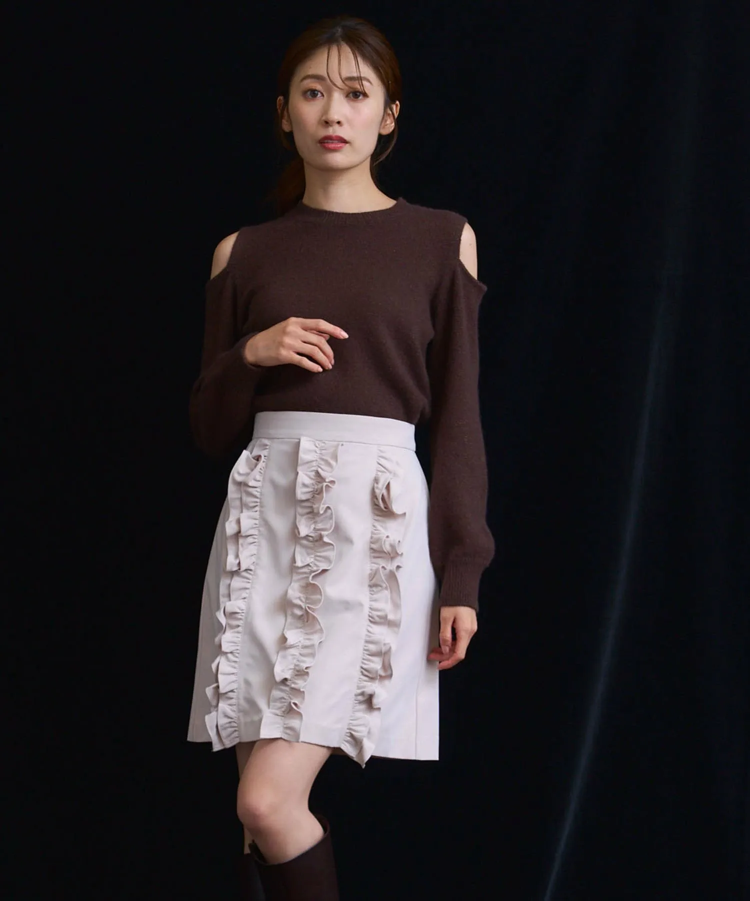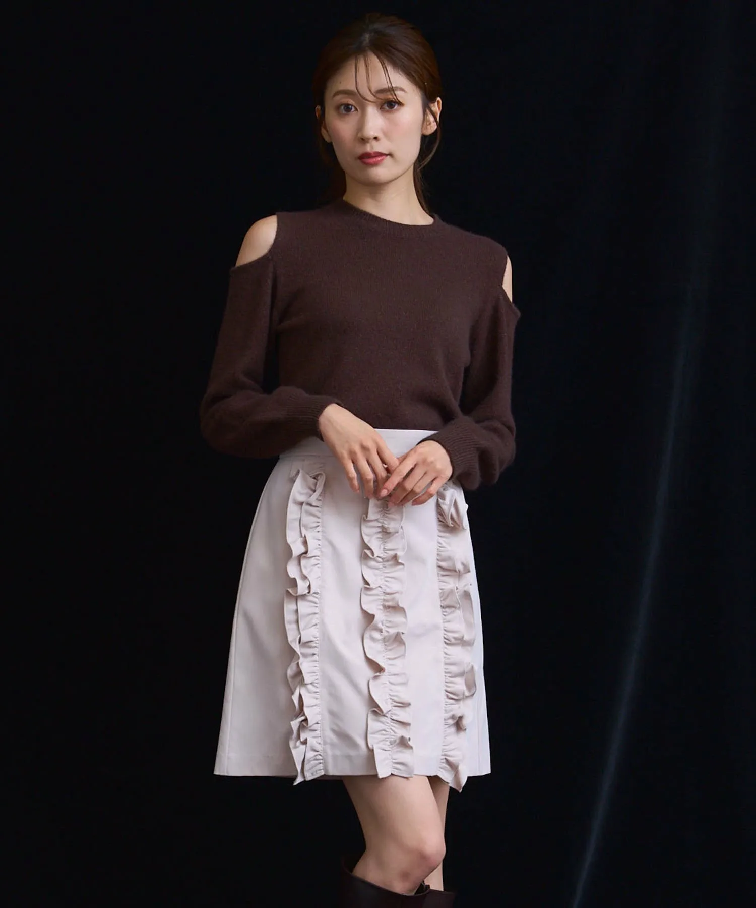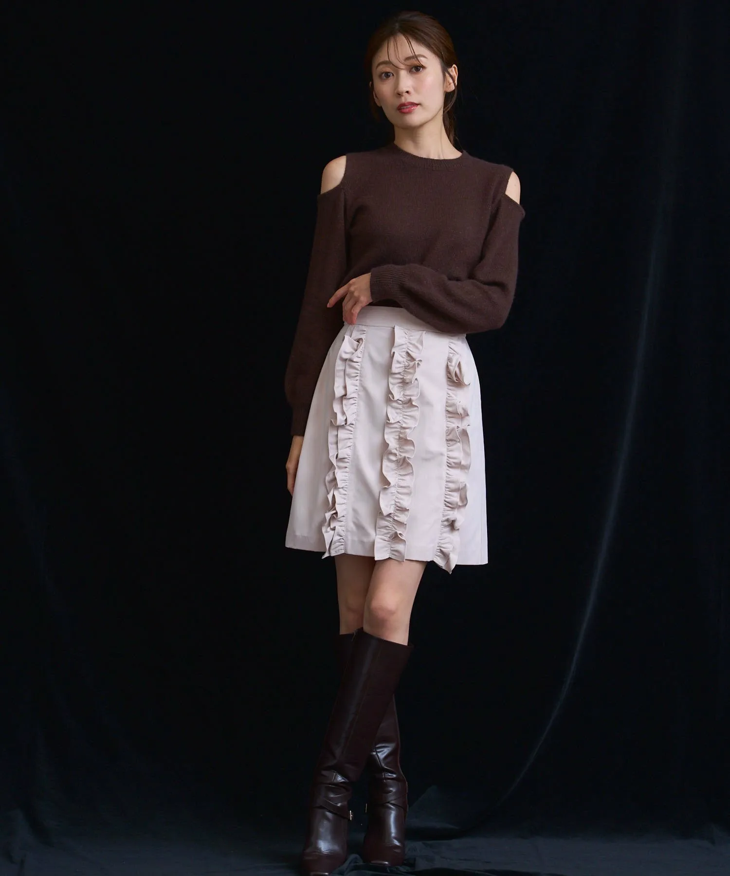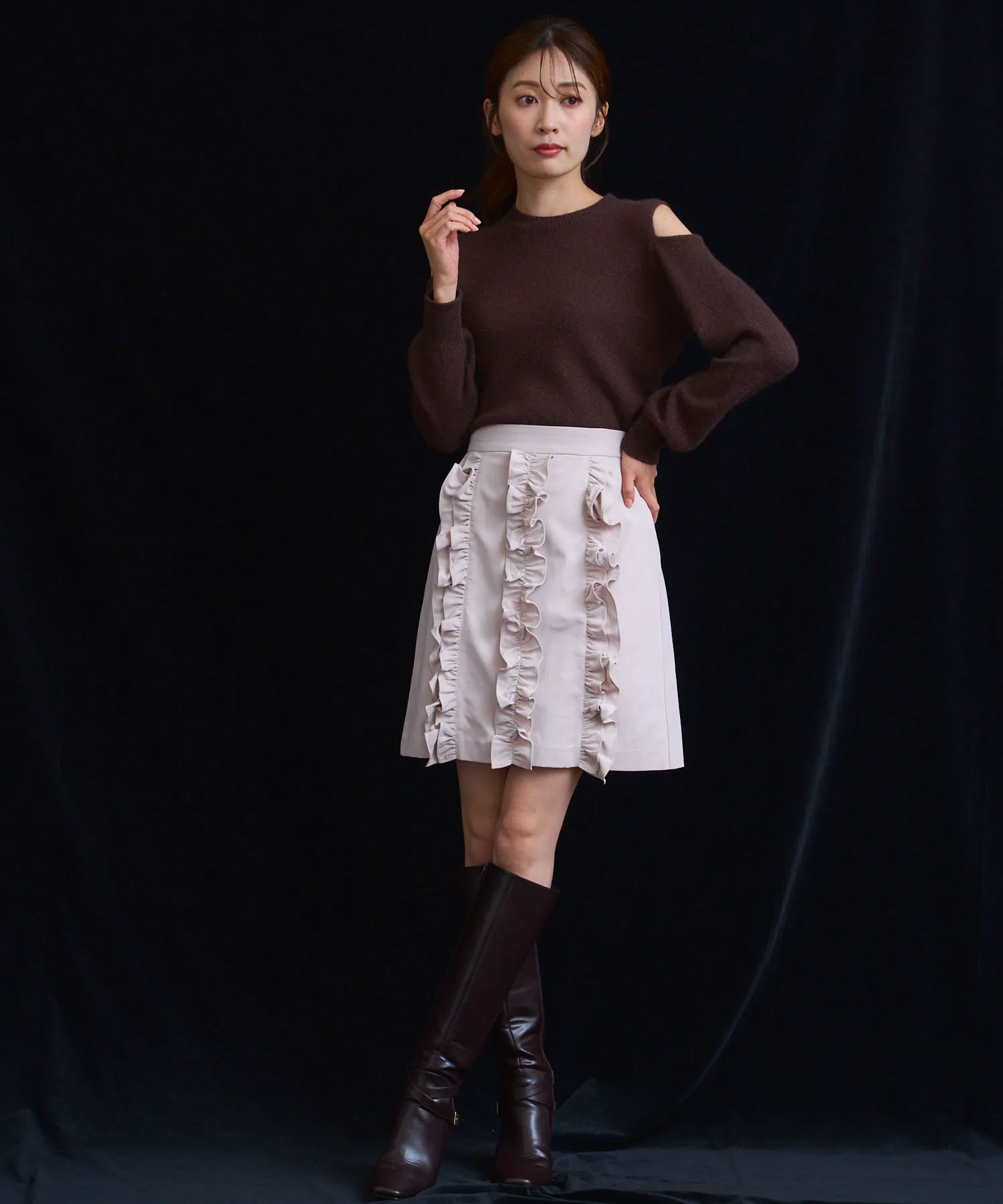 Эффектная мини-юбка, щедро украшенная собранными оборками.