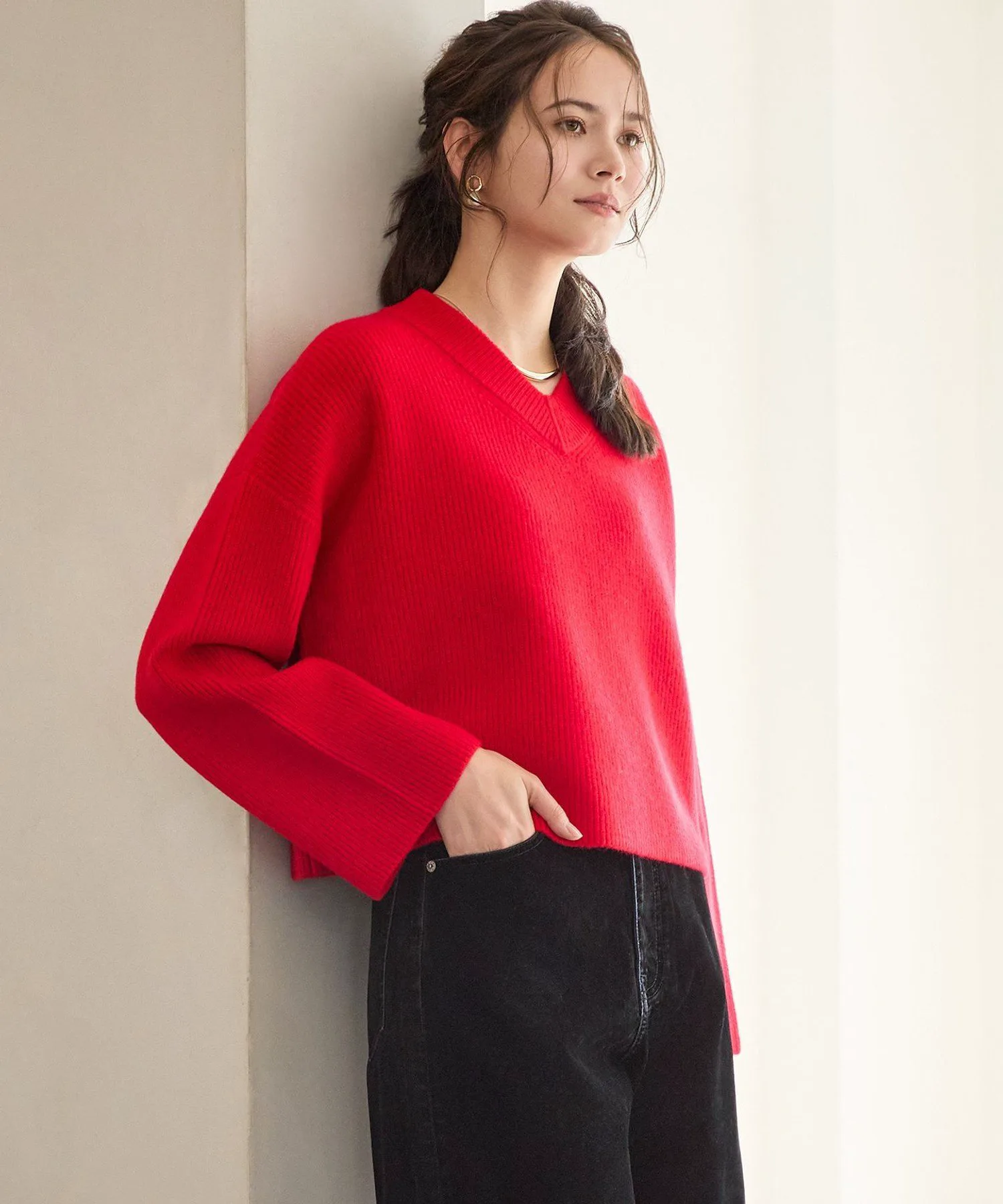 Этот короткий пуловер отличается выразительной текстурой и толстым воротником, который подчеркивает лицо. Широкие манжеты и расклешенный А-образный силуэт создают женственное впечатление. Свободный крой со спущенными плечами создает ощущение расслабленности. Сочетайте его с облегающей юбкой или широкими брюками для модного, непринужденного повседневного образа. Идеально подходит для повседневной носки или прогулок, эта вещь предлагает широкий спектр вариантов стилизации. Доступен в трех цветах: белый (#001), который сочетает в себе чистую элегантность с любыми брюками, красный (#010) и серый (#304), который добавляет нотку изысканности любому наряду.