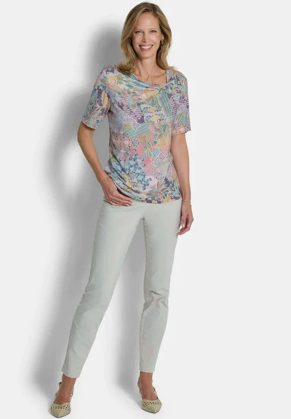 Футболка с принтом «mit knotendetail» Goldner, Sage/Rosé Patterned