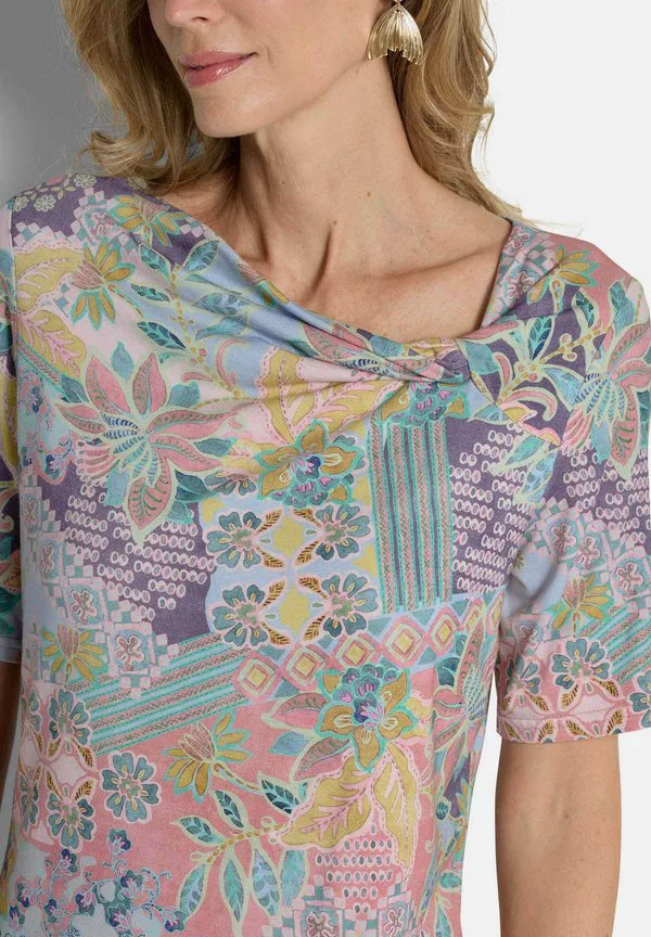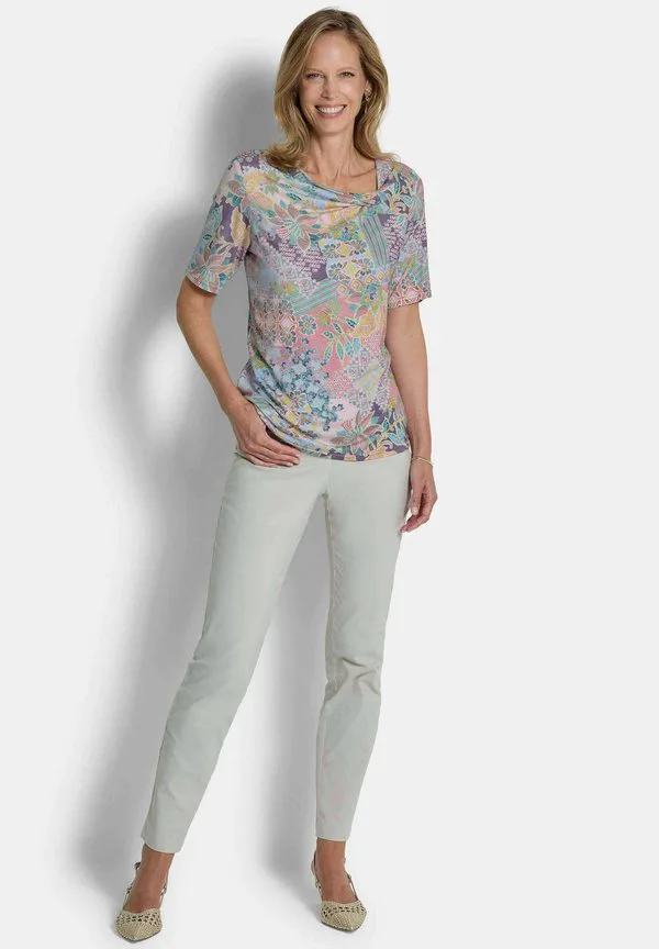Футболка с принтом «mit knotendetail» Goldner, Sage/Rosé Patterned