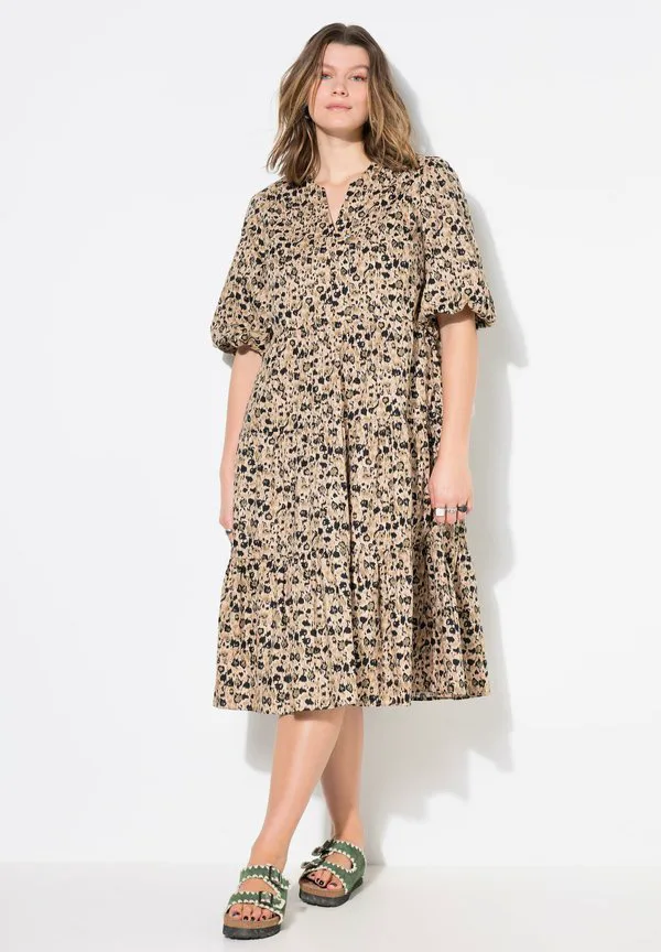 Платье миди с цветочным принтом и рюшами Studio Untold, Sand