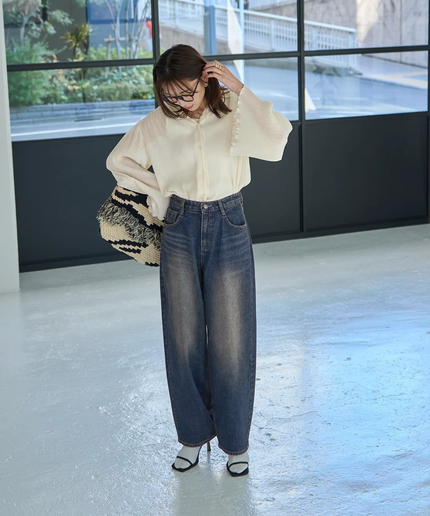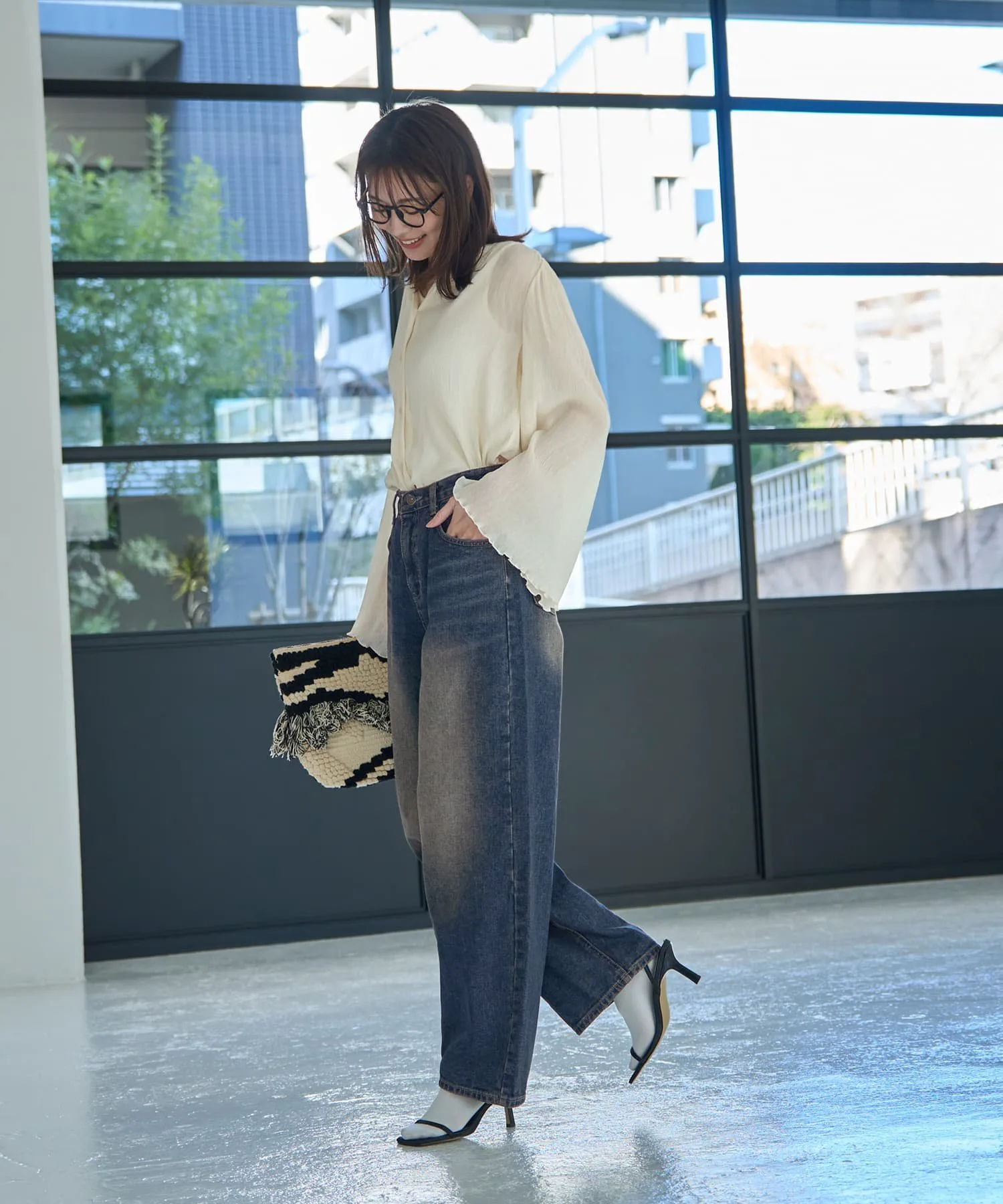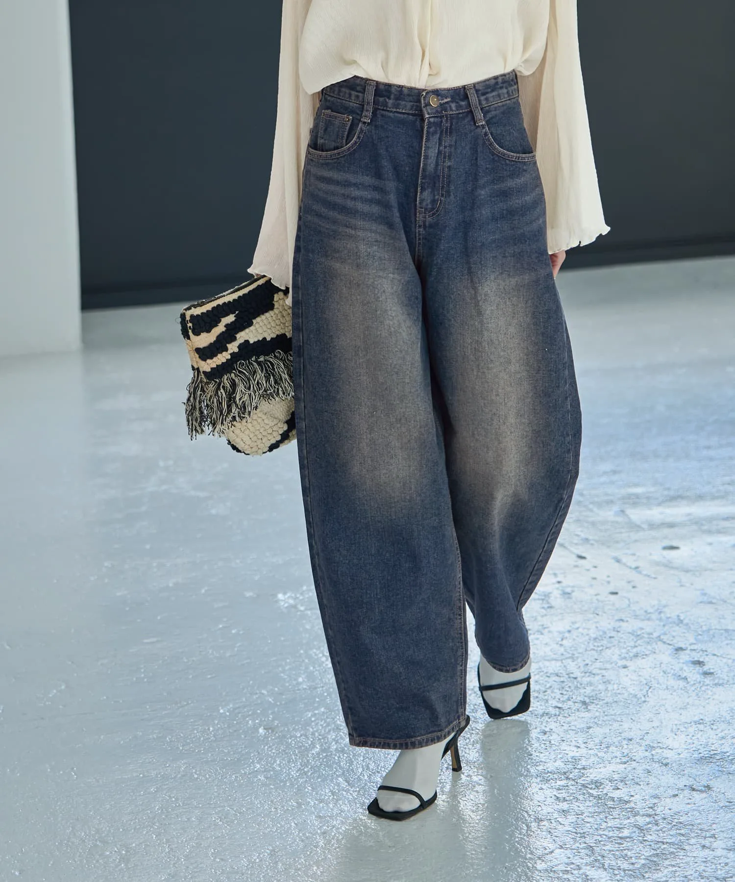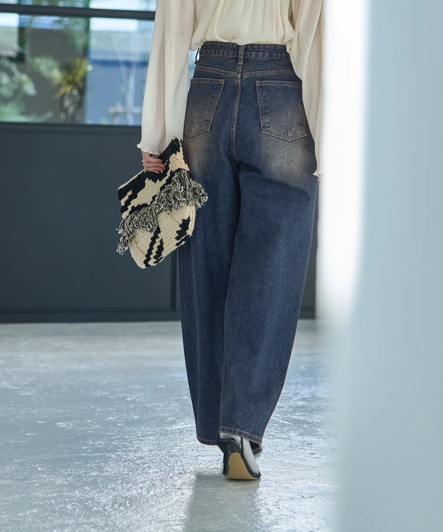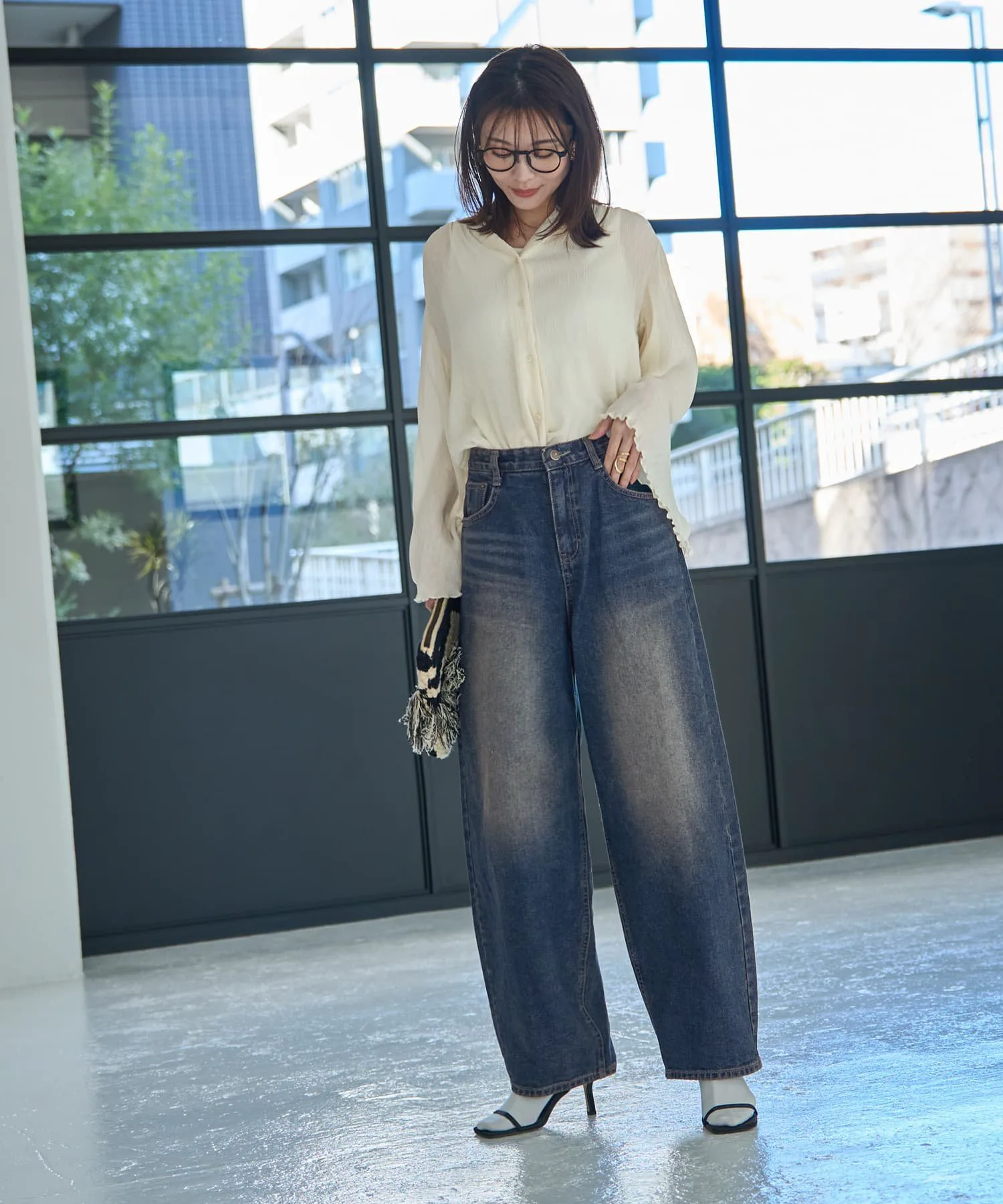 Хотя этот стиль джинсов обычно носят для создания четко очерченной, компактной верхней части тела, сочетание их с более объемной, длинной вещью для расслабленного, сбалансированного образа создает утонченный, высококлассный образ. Даже сочетание с простыми вещами обладает силой «модного» элемента, делая образ стильным.