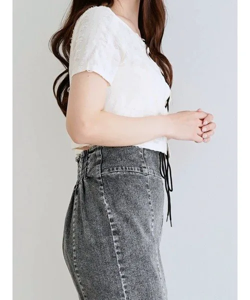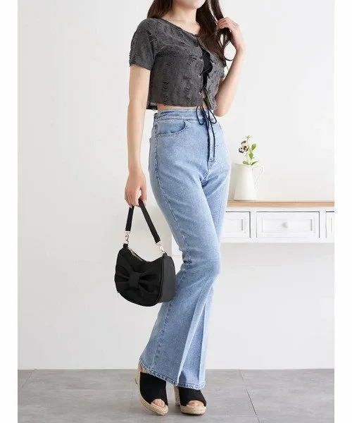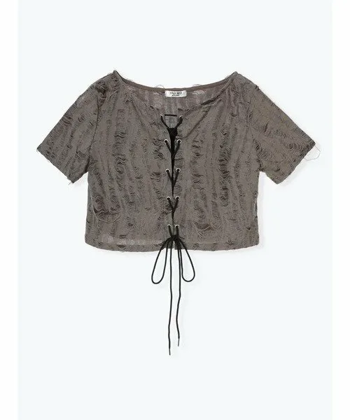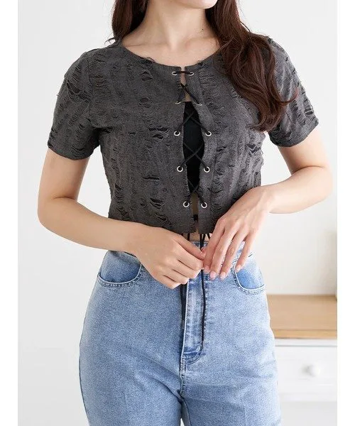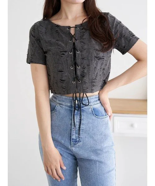 Этот стильный топ имеет потертую отделку, поэтому сочетайте его с джинсами для здорового и стильного повседневного стиля♪